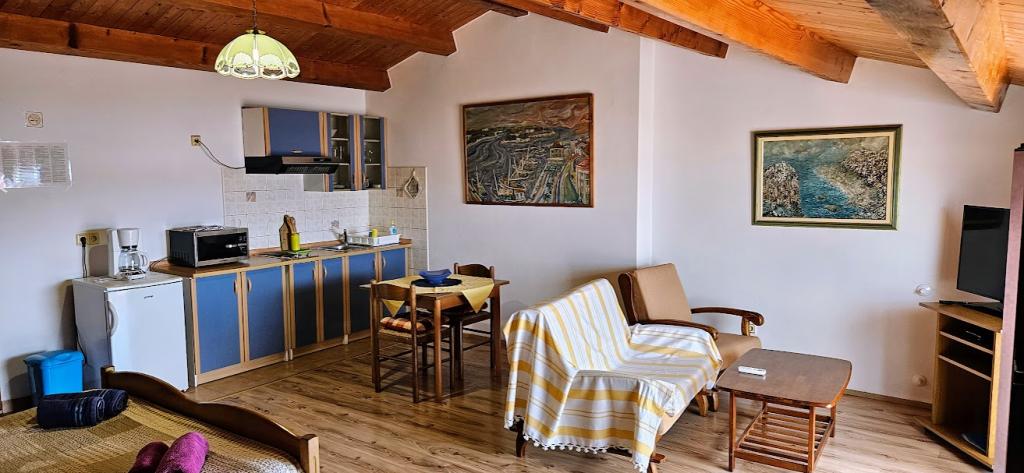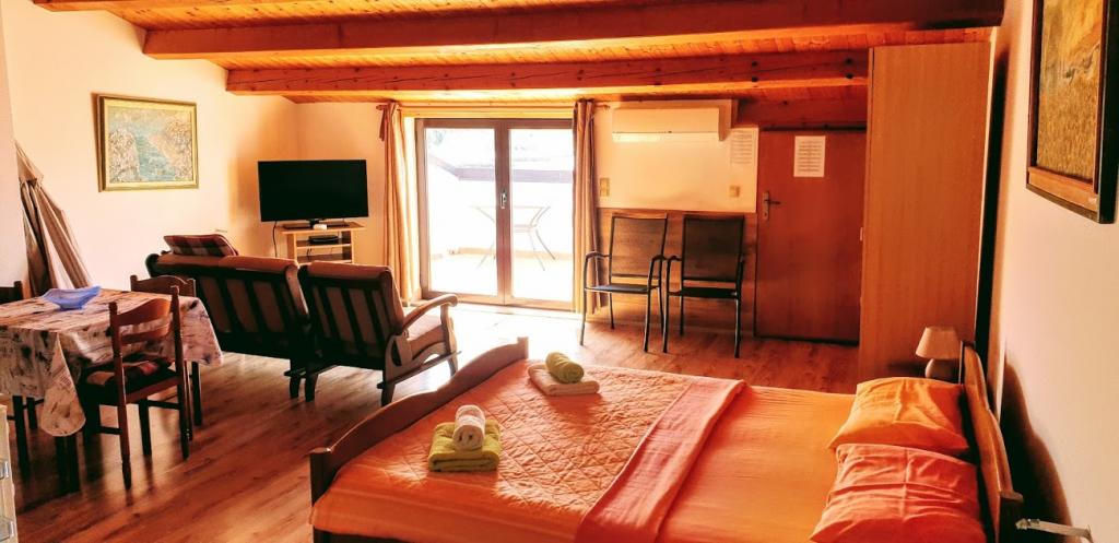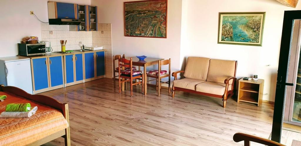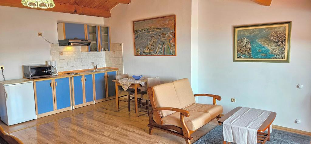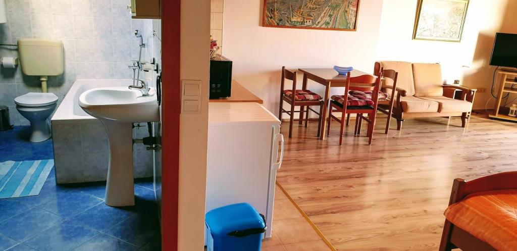 L'emplacement est fantastique. Pour les courses de base, Konzum est à 400 m, près d'un restaurant et d'une taverne, et surtout la plage est de l'autre côté de la rue ! Sur la plage un super bar. La plage est de galets et bien pour les enfants. Les patrons sont des gens merveilleux, hospitaliers et raisonnables. Le parking est devant l'appartement. Il est à environ 1,5 km du centre en marchant le long de la mer. Je n'ai que des mots d'éloge !