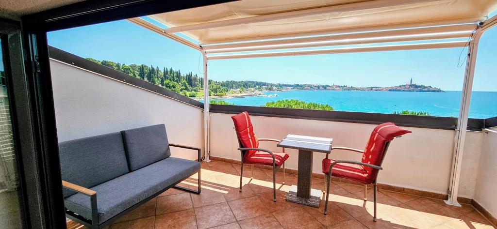 A 40 mètres de la mer et de la plage, 3 nouveaux appartements à Rovinj, première rangée ! Belle vue sur la mer et la baie de Rovinj et la vieille ville de Rovinj ! Chaque appartement dispose d'une terrasse avec vue sur la mer et Rovinj, d'une table et de chaises et d'une protection solaire.