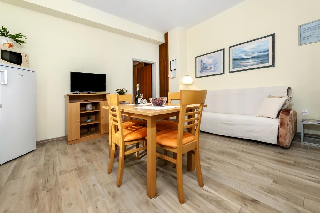 Lit bébé et chaise haute disponibles gratuitement sur demande. Les appartements sont entièrement équipés et climatisés. Le prix comprend le linge de lit, les serviettes de toilette, l'utilisation de la climatisation, le Wi-Fi et une place de parking par appartement dans la cour. Changement du linge de lit et des serviettes sur demande. Lave-linge dans les appartements A2+1 SANDRA et A4+1 SANDRA. Lave-vaisselle dans l'appartement A4+1 SANDRA.