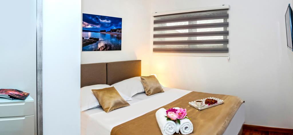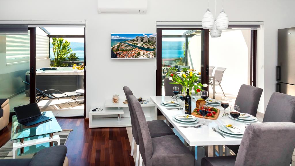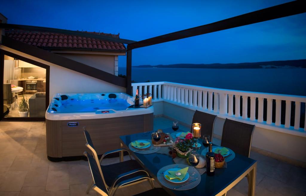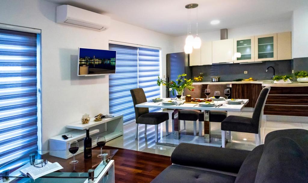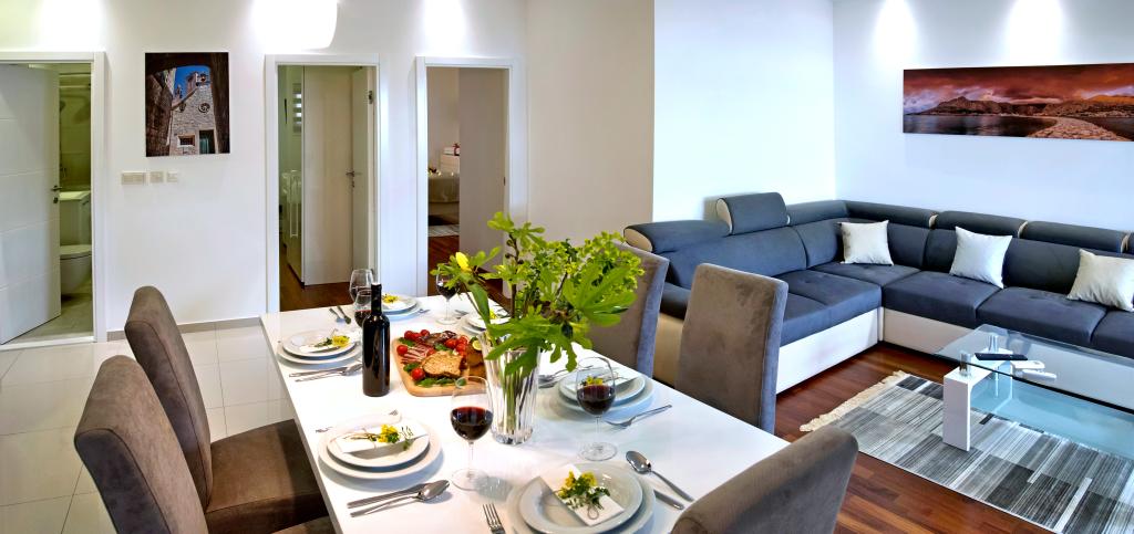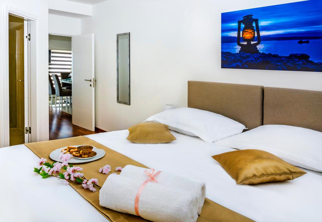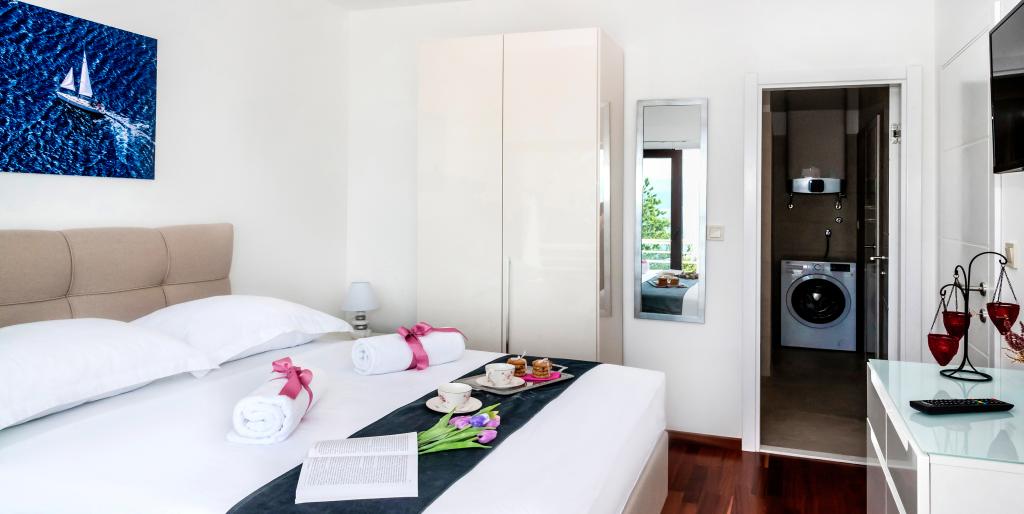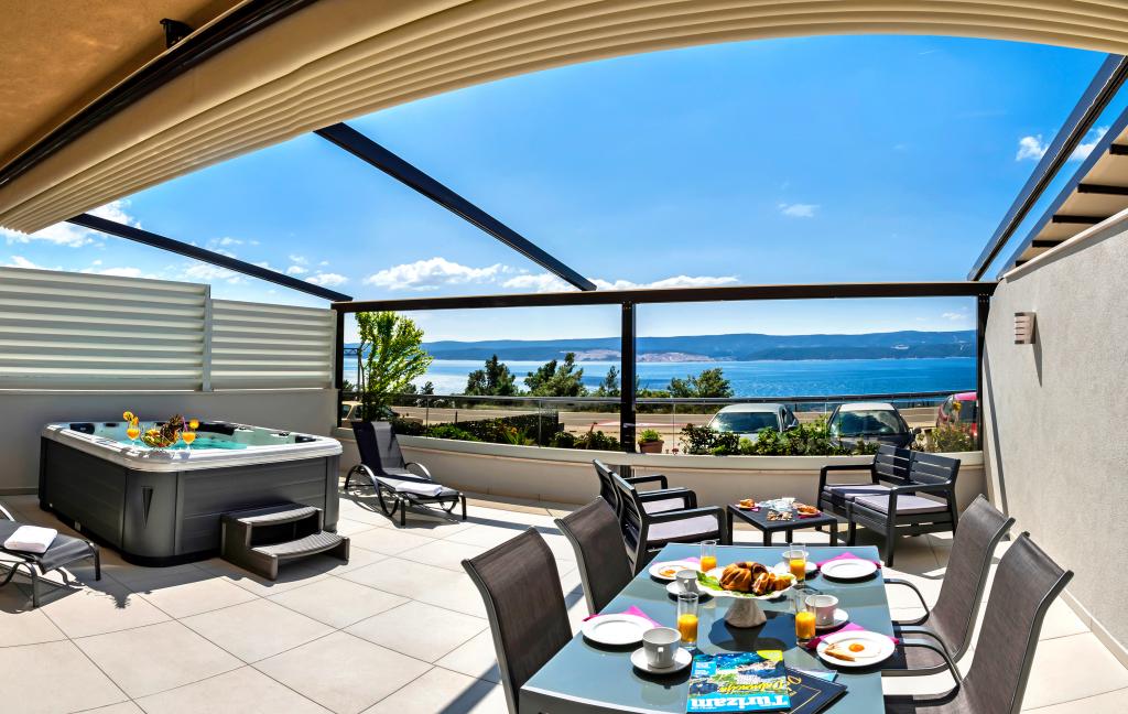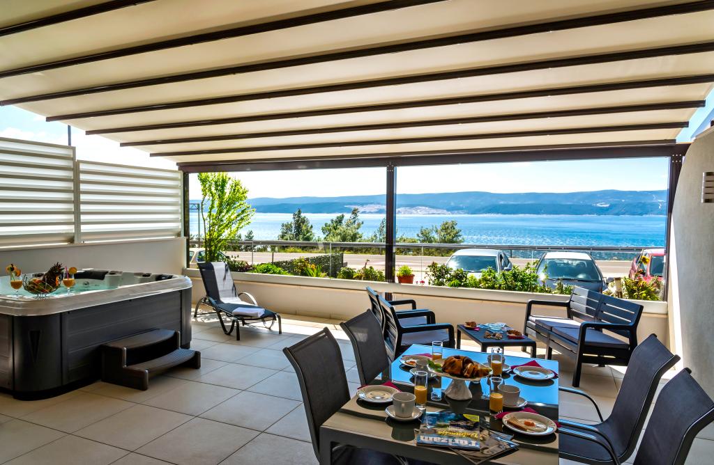 L'établissement "Adria Croatica" dispose de 4 appartements luxueusement équipés avec 4 étoiles, vue sur la mer et parking gratuit. Il est situé à 100 m de la mer et la plage est accessible par un métro situé à côté du bâtiment. Les appartements sont entièrement équipés de façon moderne avec des meubles de qualité. Elles sont idéales pour un séjour plus long, tandis que les baignoires d'hydromassage permettent de se détendre. Les unités possèdent 2 chambres à coucher, 2 salles de bain, cuisine, salon, salle à manger, terrasse ou balcon. Ils sont équipés de chambres insonorisées, climatisation, internet gratuit, chaînes satellite,...
