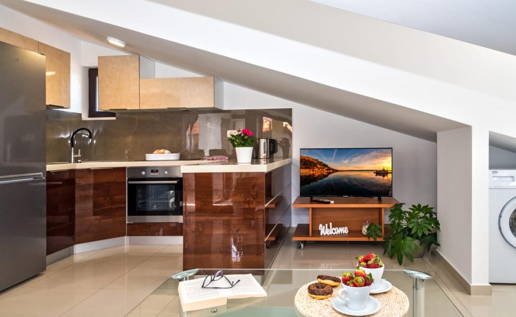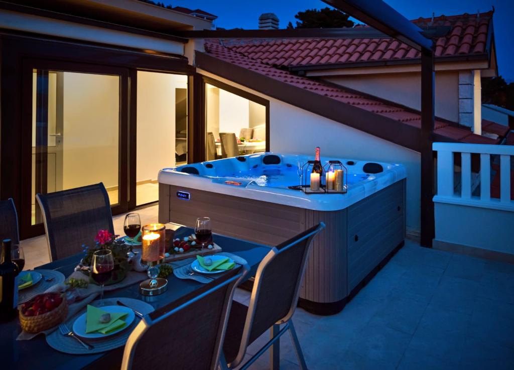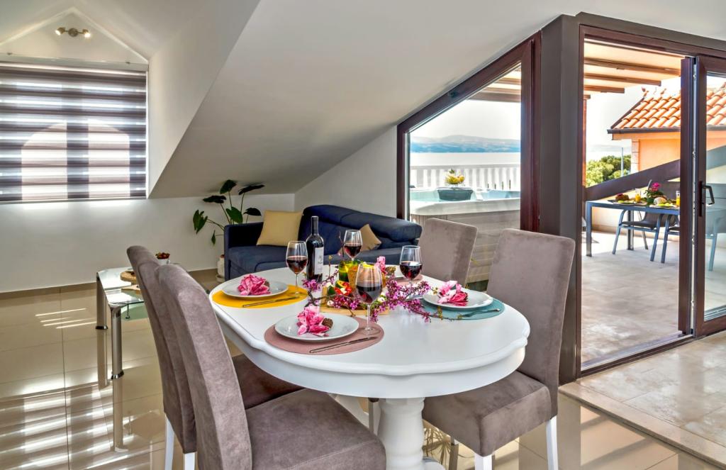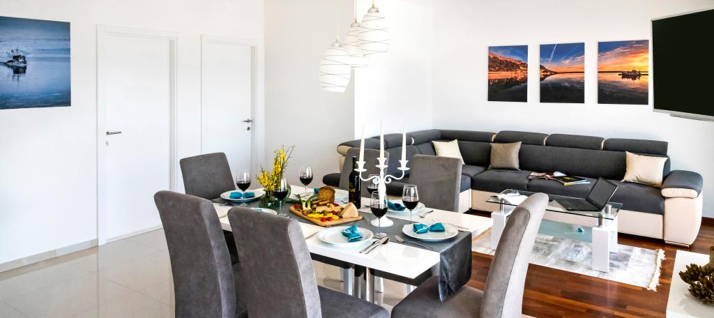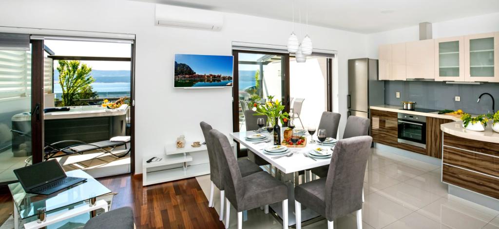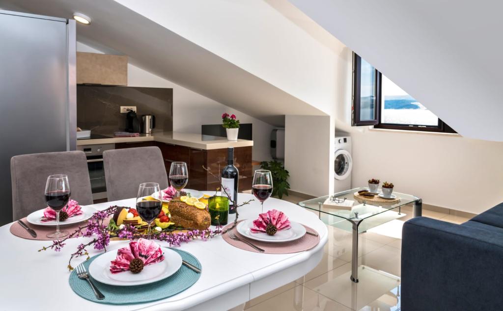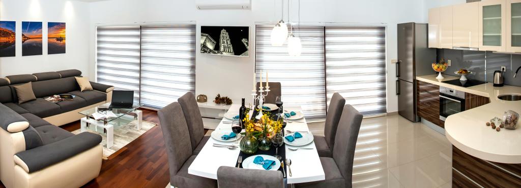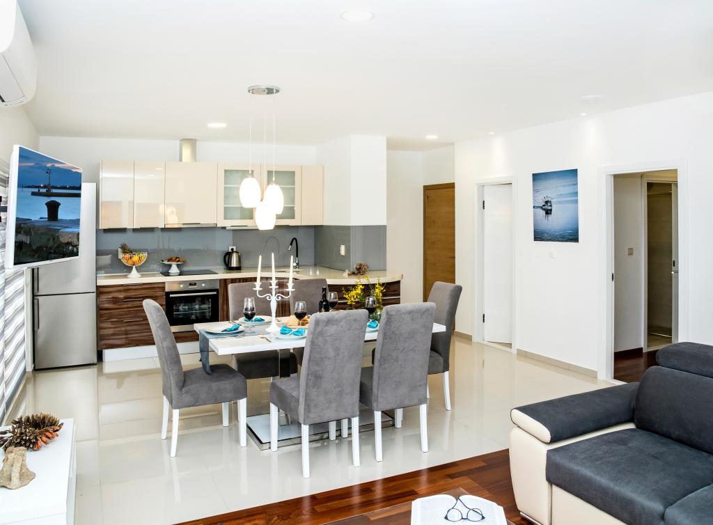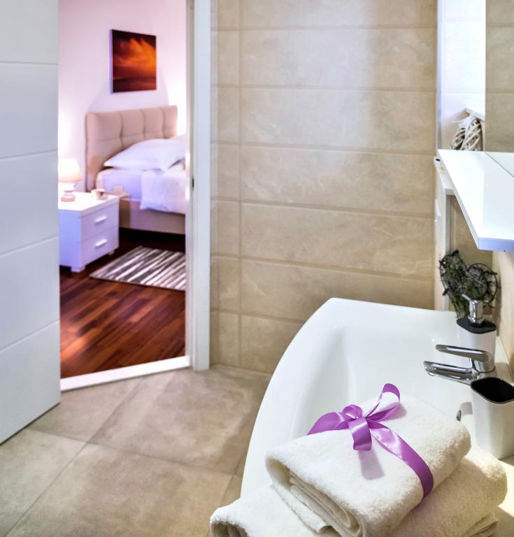 L'établissement "Adria Croatica" dispose de 4 appartements luxueusement équipés avec 4 étoiles, vue sur la mer et parking gratuit. Il est situé à 100 m de la mer et la plage est accessible par un métro situé à côté du bâtiment. Les appartements sont entièrement équipés de façon moderne avec des meubles de qualité. Elles sont idéales pour un séjour plus long, tandis que les baignoires d'hydromassage permettent de se détendre. Les unités possèdent 2 chambres à coucher, 2 salles de bain, cuisine, salon, salle à manger, terrasse ou balcon. Ils sont équipés de chambres insonorisées, climatisation, internet gratuit, chaînes satellite,...