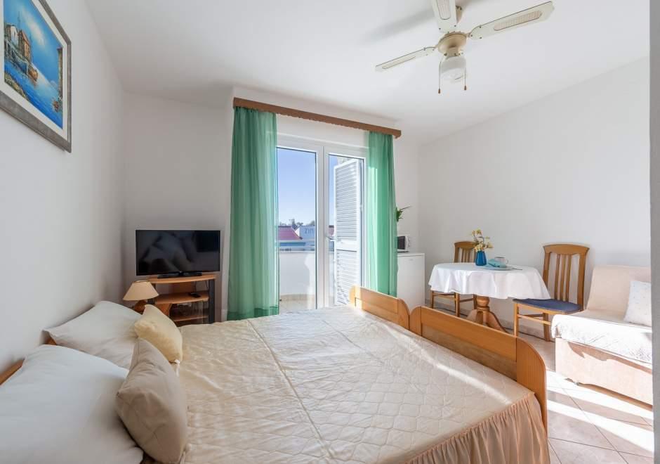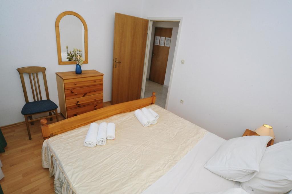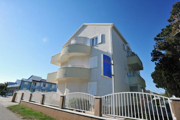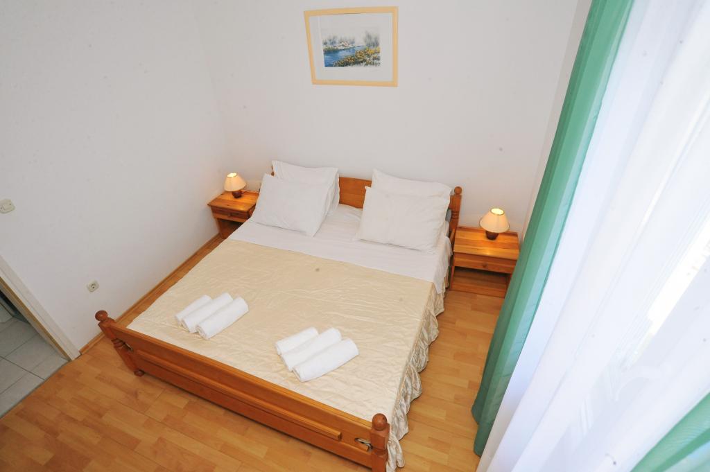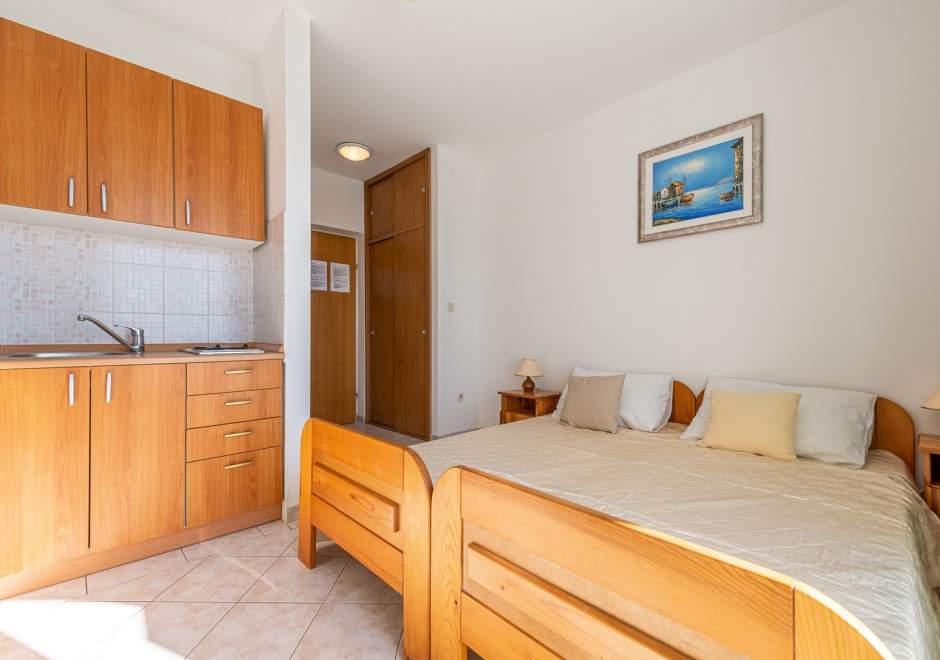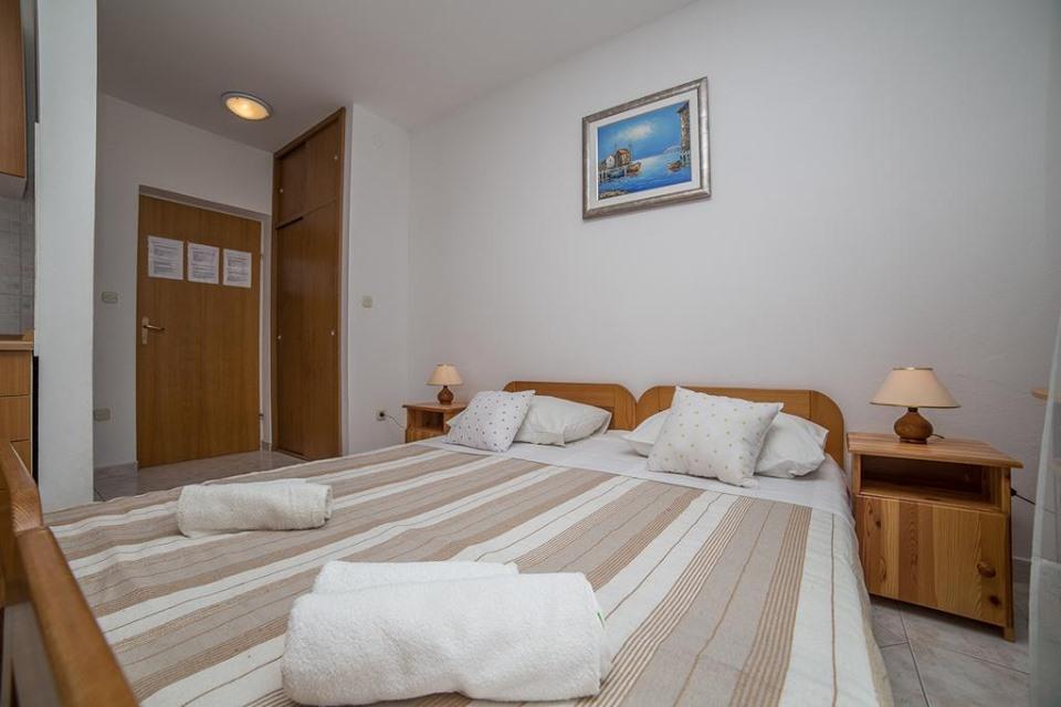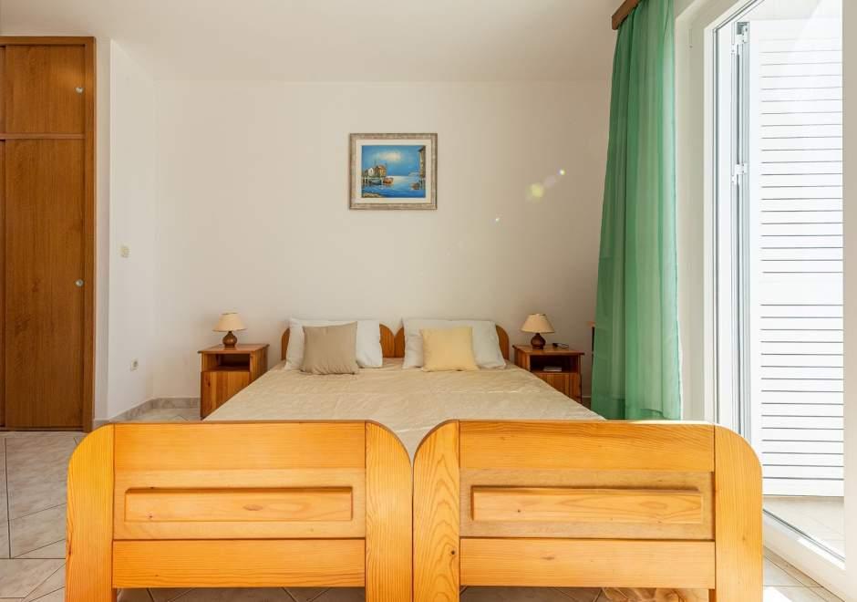 Maison équipée de façon moderne avec 9 logements : 6 appartements avec une chambre et un séjour avec deux lits gigognes supplémentaires, un deux places et un trois places, ainsi qu'une cuisine équipée, une salle de bain avec douche et un grand balcon avec une table et des chaises. Il y a une grande armoire dans le couloir. 3 studios sont conçus pour deux personnes, ils sont également entièrement équipés : salle de bain avec douche, grande armoire, cuisine, et un petit balcon avec une table et des chaises. Tous les appartements disposent de la climatisation.La maison est située à 3 minutes à pied de la mer ou à 5 minutes à pied de la grande plage de sable (Kraljičina plaža).