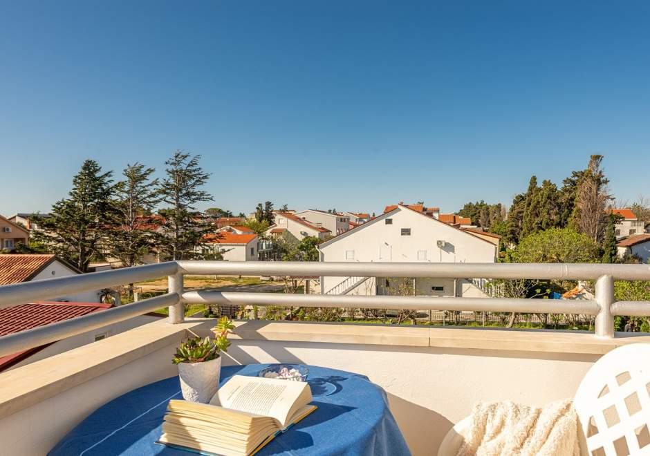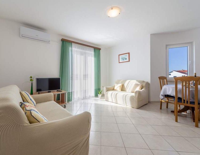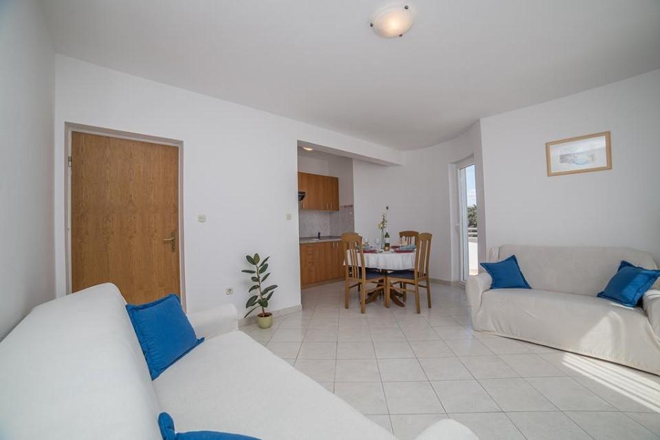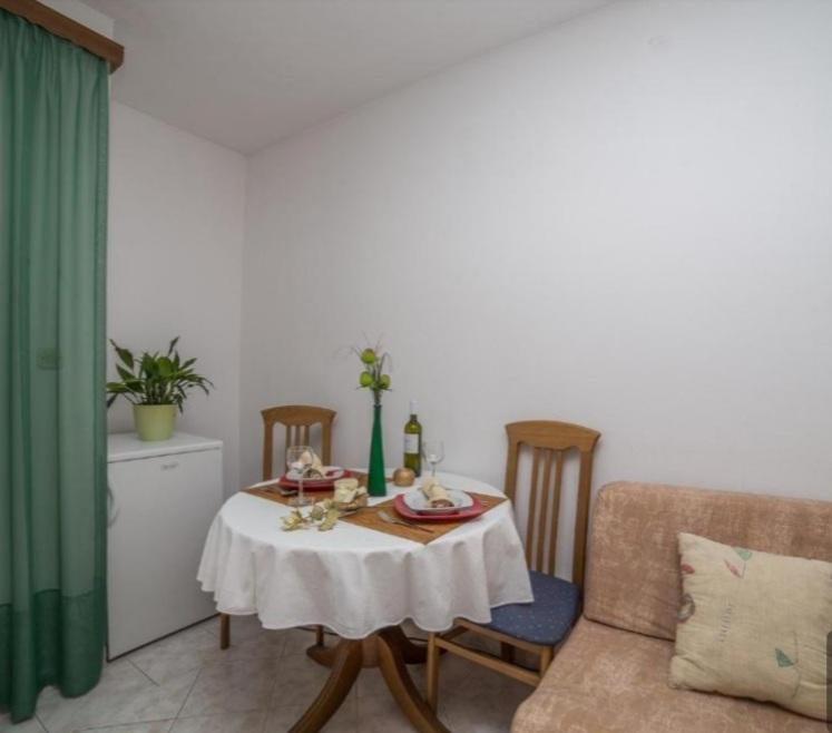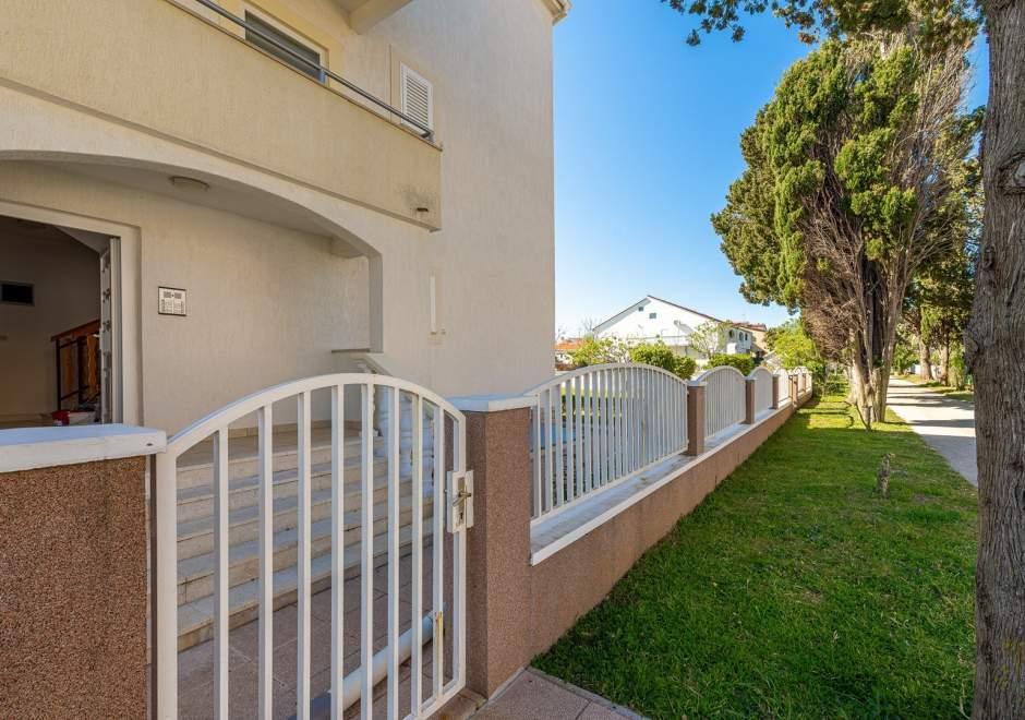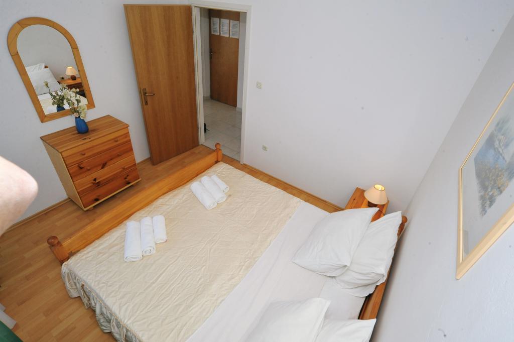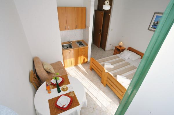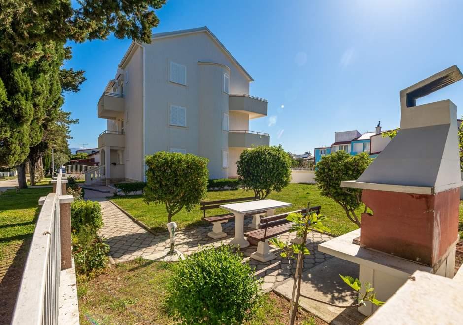 Maison équipée de façon moderne avec 9 logements : 6 appartements avec une chambre et un séjour avec deux lits gigognes supplémentaires, un deux places et un trois places, ainsi qu'une cuisine équipée, une salle de bain avec douche et un grand balcon avec une table et des chaises. Il y a une grande armoire dans le couloir. 3 studios sont conçus pour deux personnes, ils sont également entièrement équipés : salle de bain avec douche, grande armoire, cuisine, et un petit balcon avec une table et des chaises. Tous les appartements disposent de la climatisation.La maison est située à 3 minutes à pied de la mer ou à 5 minutes à pied de la grande plage de sable (Kraljičina plaža).