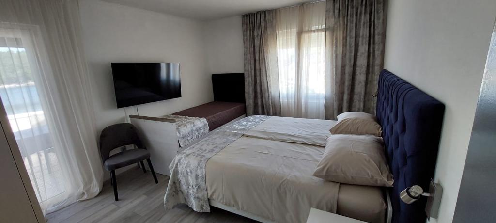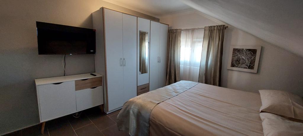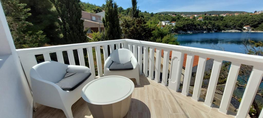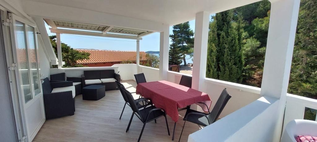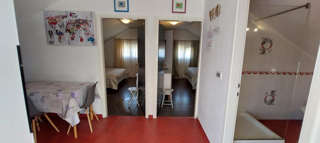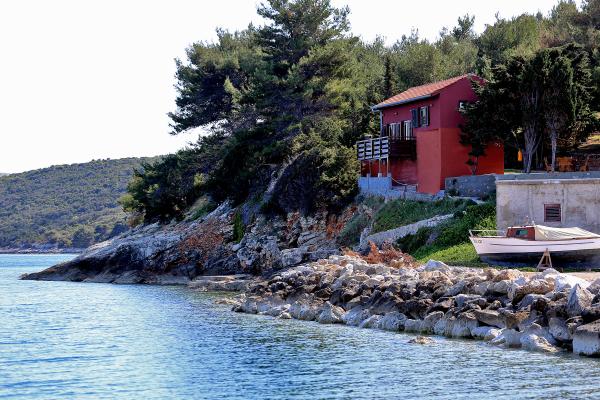 Les appartements Kolić à Savar sur Dugi otok sont situés à proximité immédiate de la mer. Savar est un endroit idéal pour des vacances reposantes en famille ou entre amis. Nous proposons un hébergement dans un total de 3 appartements avec une terrasse et une belle vue sur la mer. Dans une maison rouge indépendante se trouve un studio pour 2 personnes, équipé pour un séjour agréable. Les 2 autres appartements sont situés dans la maison blanche voisine. L'une au premier étage et l'autre au grenier. les deux appartements disposent de deux chambres, d'une cuisine avec salle à manger et d'une salle de bain. Chaque appartement de la maison blanche peut accueillir confortablement 4 à 5 personnes, et si besoin, nous pouvons également accueillir 6 personnes. La particularité de nos appartements est qu'ils se trouvent juste à côté de la mer et que la plage est juste en face de la maison ! La cour s'étend sur plus de 1000 m2 et est entourée de pins qui nous donnent une ombre épaisse. Lors des chaudes journées d'été, nos hôtes se reposent dans un hamac entre deux pins et peuvent également s'amuser sur les transats au bord de la mer ou à l'ombre des pins.