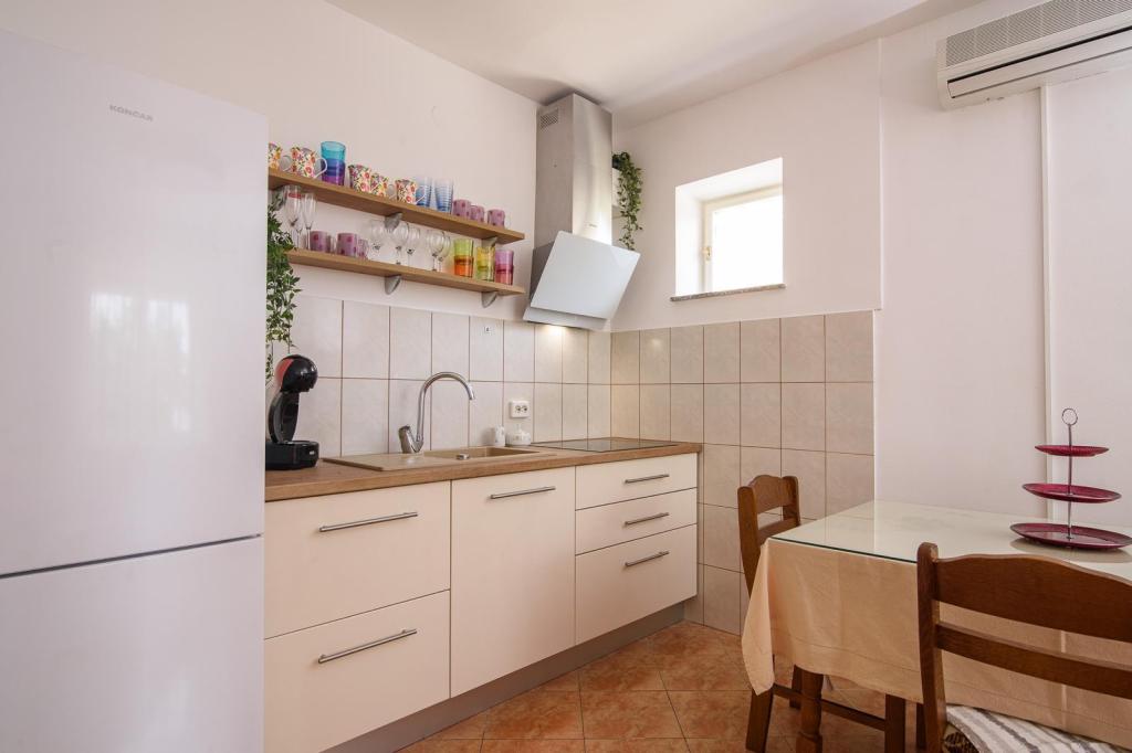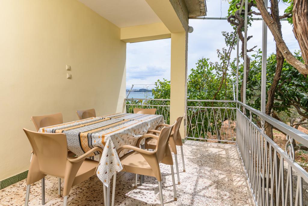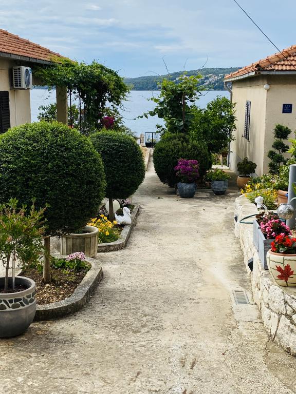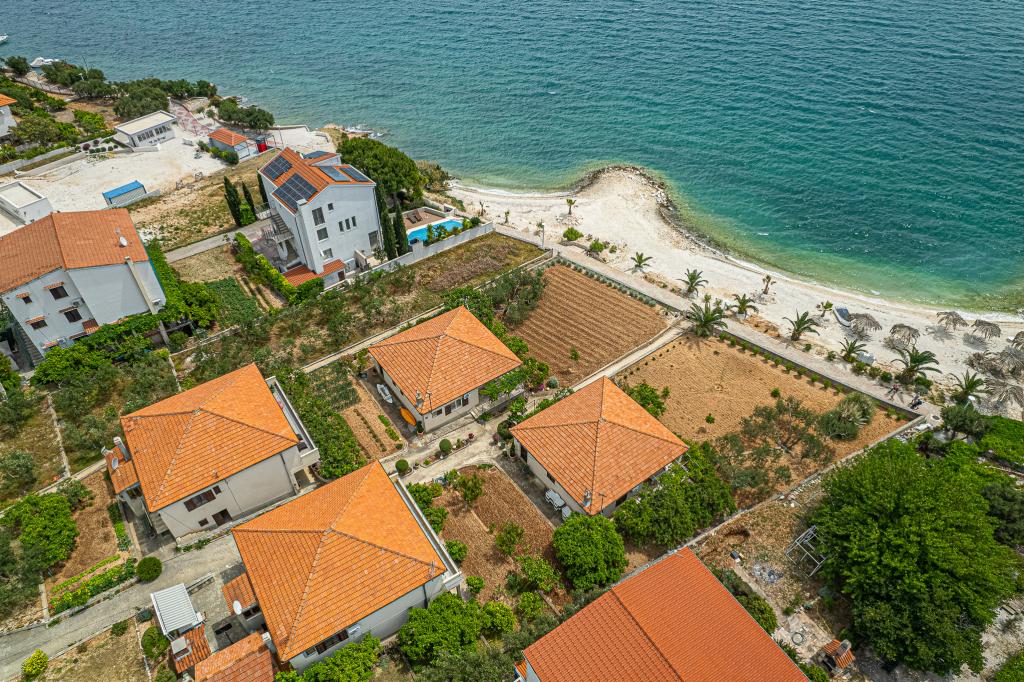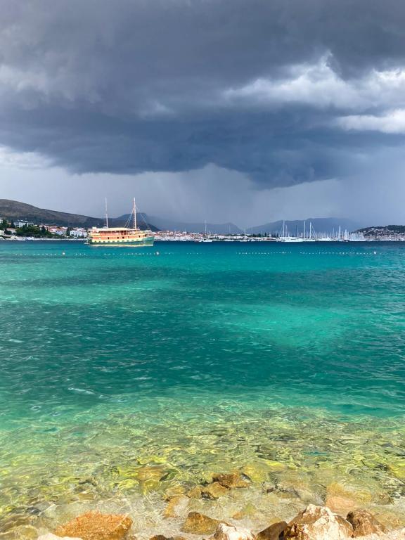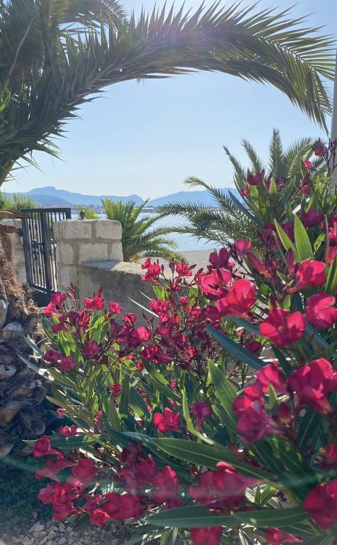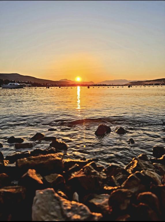 Appartement entièrement équipé dans un quartier calme. Situé au premier rang de la mer, à 10 m de la plage. L'appartement est situé à 20 minutes à pied du centre et à 40 minutes à pied de la ville de Trogir. Il y a un restaurant et un café-bar à proximité.