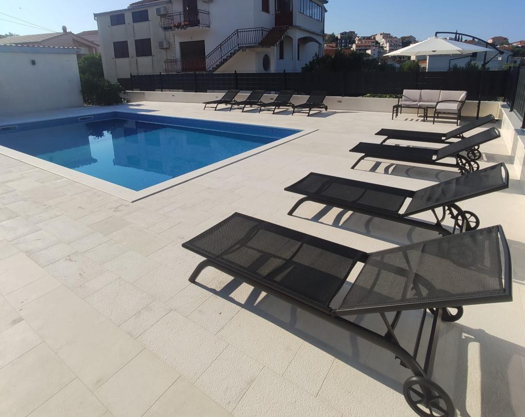 Appartements récemment rénovés avec une piscine de 9x5 mètres, un grand solarium avec transats et meubles d'angle, il y a aussi des toilettes dans la piscine, dans la belle ville dalmate de Seget Vranjica, à seulement 5 minutes à pied de la plage. À moins de 200 m, il y a des magasins, des restaurants, une église, des terrains de sport, etc. L'ancienne ville UNESCO de Trogir est à seulement 4 km de nous, qui est reliée par la ligne de ferry Seget Vranjica - Trogir, l'aéroport est à 10 km et la ville de Split est à 30 km.