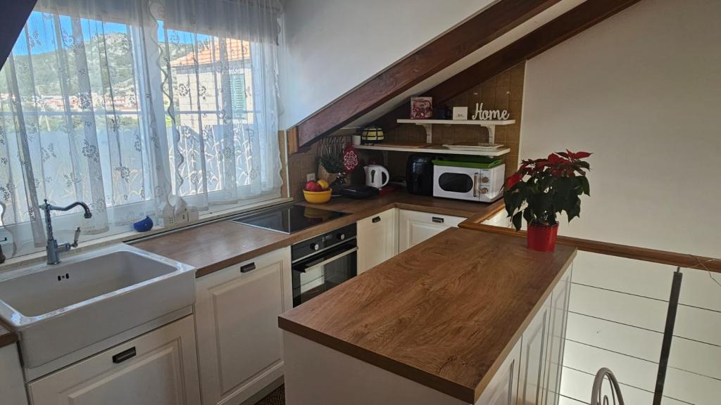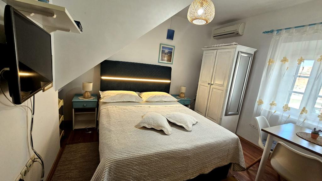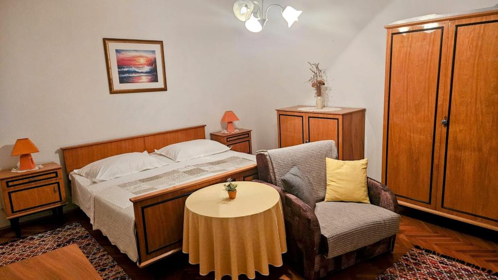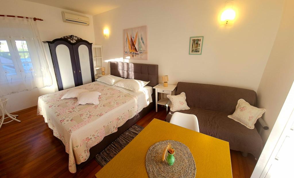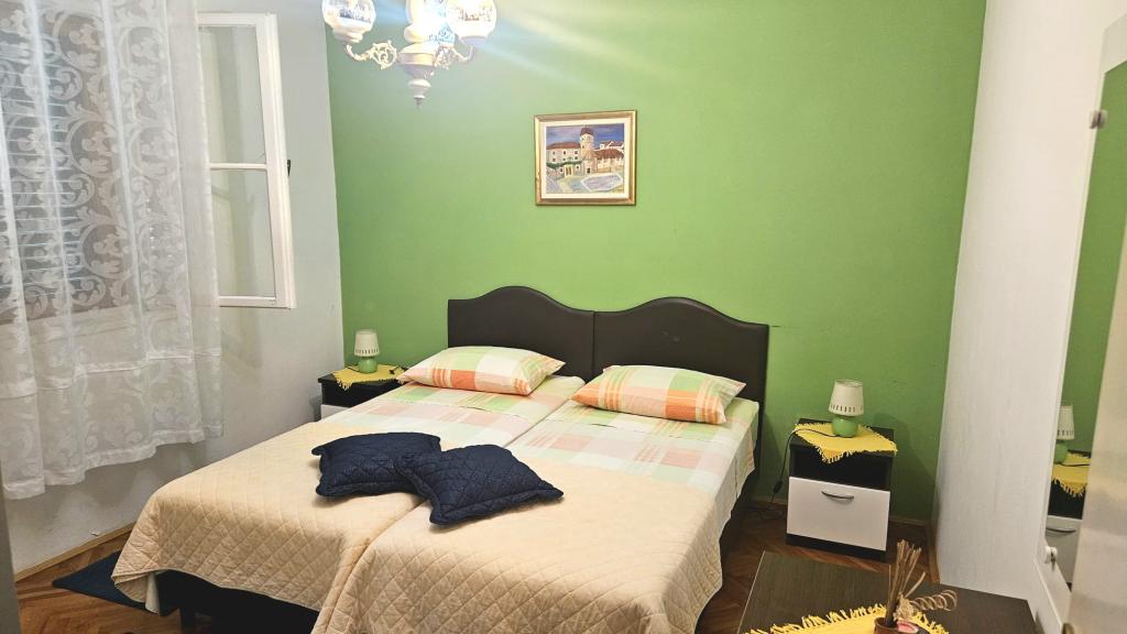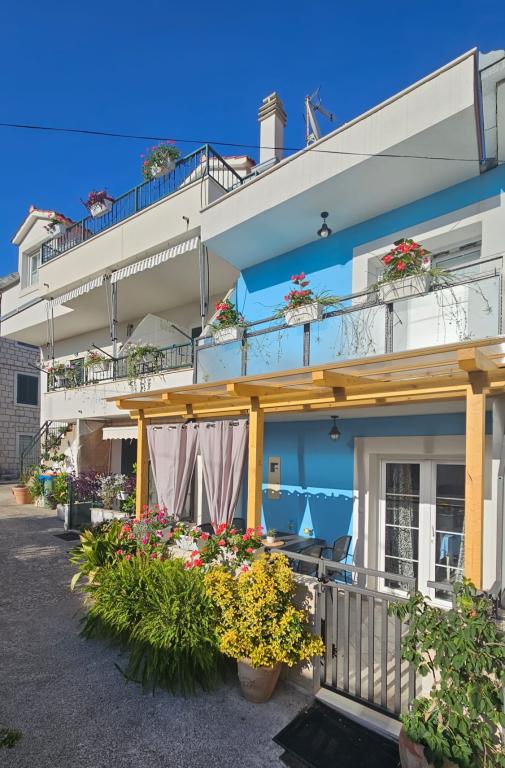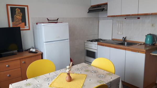 Appartements "Viktorija" sont situés dans le petit village Seget Vranjica, à 6 km de Trogir - protégé par l'UNESCO ville, à 9 km de l'aéroport de Split, 30 km de Split. Appartements "Viktorija" Studiia comprennent 2 suites et 1 appartement (4 1): Studio pour 2 personnes - 22 m2 balcon 5 m2, situé au premier étage, cuisine, salon et la chambre sont situés dans une même pièce, WC avec douche, télévision par satellite, de la climatisation, d'une connexion Wi-Fi gratuite. Studio (2 1) - 25 m2 et balcon 5 m2, situé au premier étage, cuisine, salon et chambre à coucher (canapé et lit double) sont situés dans une chambre, salle de bains avec douche, TV satellite, air conditionné, Wi-Fi Appartement (4 1) - 50 m2 balcon 10 m2, situé au premier étage, cuisine, salle à manger, 2 chambres, salle de bains avec douche, TV satellite, air connexion Wi-Fi Tous les appartements sont entièrement équipés avec des ustensiles de cuisine, couverts, couvertures et serviettes. Nettoyage final inclus dans le prix.