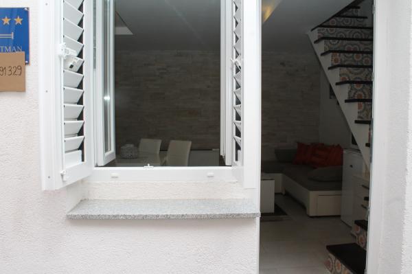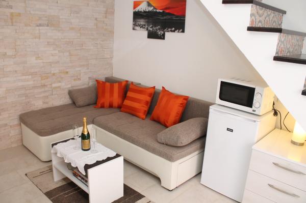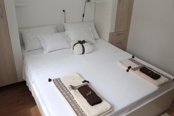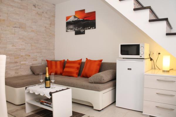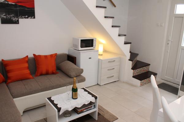 Appartement moderne sur deux étages (maison individuelle en enfilade) avec sa propre terrasse dans la vieille ville dans un endroit très calme et à seulement 50 m du centre, à proximité des supermarchés, de la poste, des bureaux de change, des cafés et des restaurants. distance de la plage 100 m. A l'étage supérieur il y a une chambre avec un lit double 160x200, et une salle de bain, et à l'étage inférieur il y a un salon avec une cuisine et un canapé d'angle qui sert de lit d'appoint 160x200 . L'appartement est entièrement équipé de tout pour passer d'agréables vacances. Devant l'entrée se trouve une terrasse de 10 m2 qui peut être utilisée comme salle à manger d'été ou comme lieu de détente. Il est interdit de fumer dans la maison. Les animaux ne sont pas autorisés. Pour les clients est fourni un parking pour un véhicule à 5 minutes à pied de l'appartement. Après le départ des clients, l'appartement est désinfecté en détail et toutes les mesures sont prises pour protéger les clients contre les infections. En cas de besoin, une assistance médicale est disponible à proximité, disponible 24h / 24.