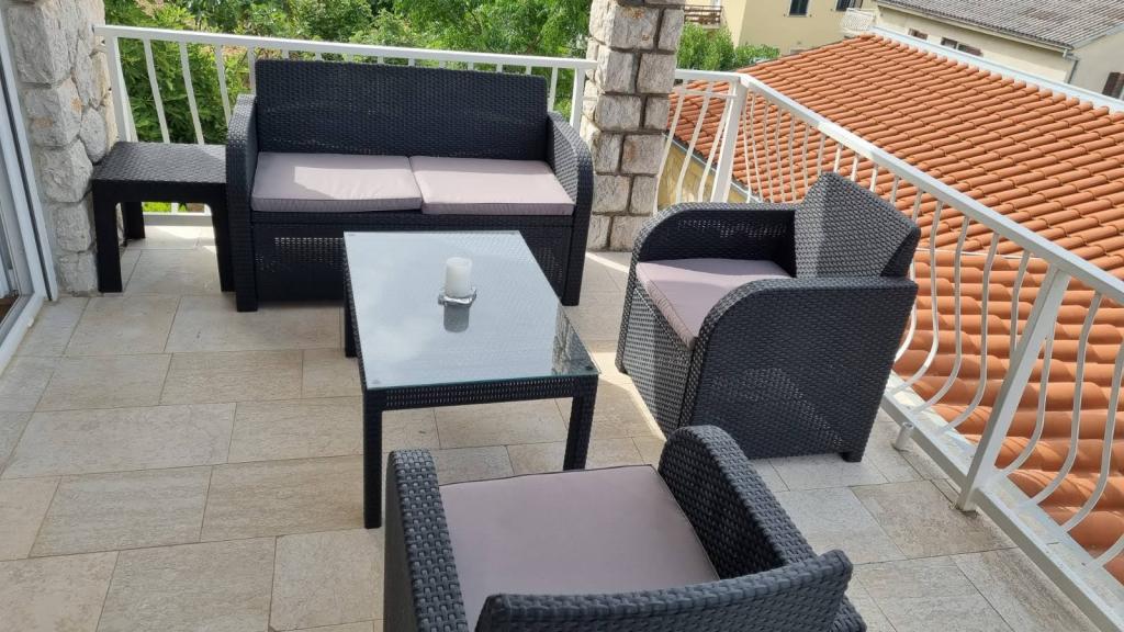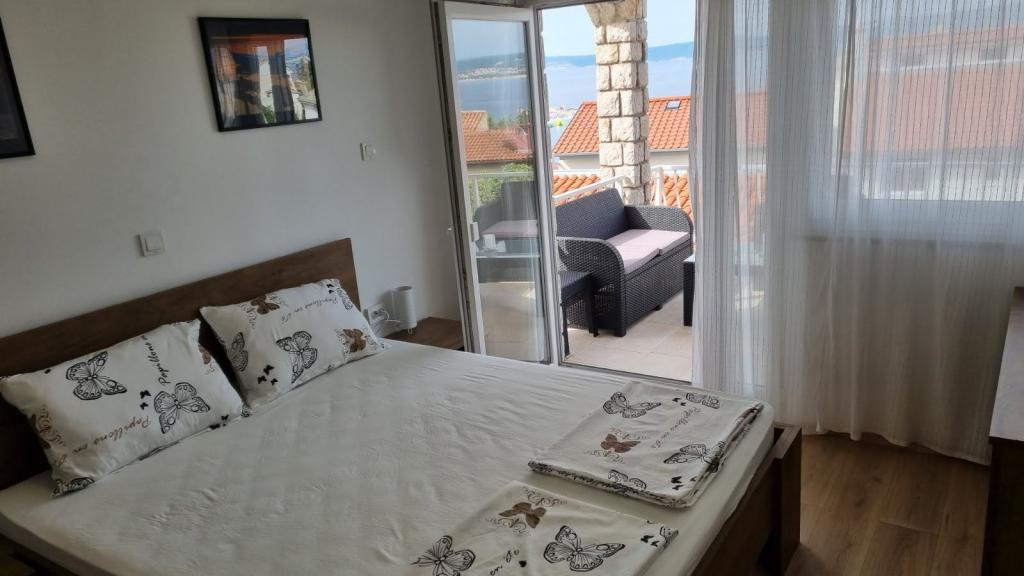 Je loue un appartement de deux chambres avec une grande terrasse et vue sur la mer. L'appartement est situé dans une rue calme, à 200 mètres de la mer, de la plage et du centre de Selce.