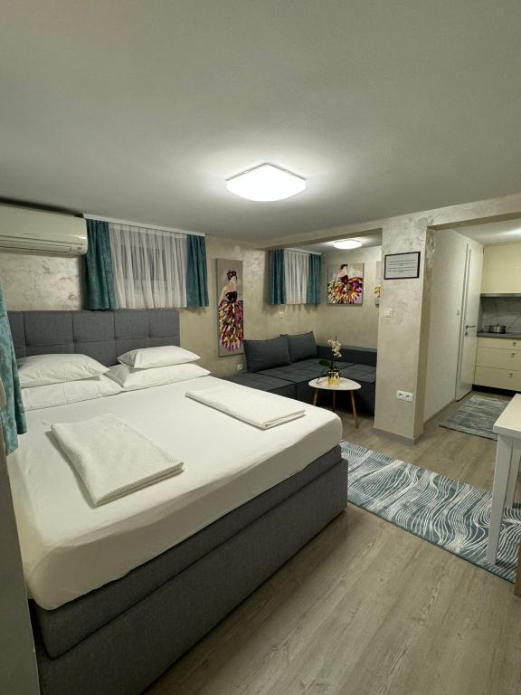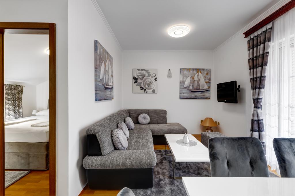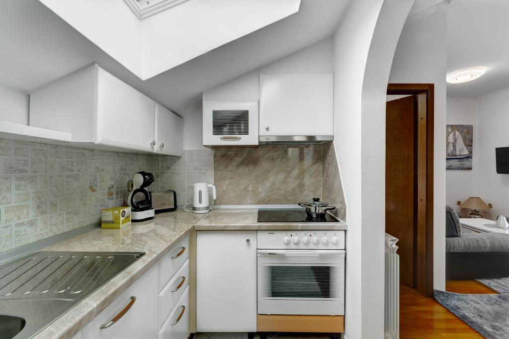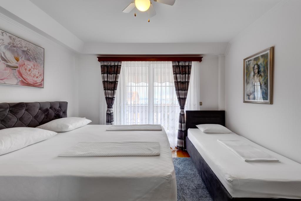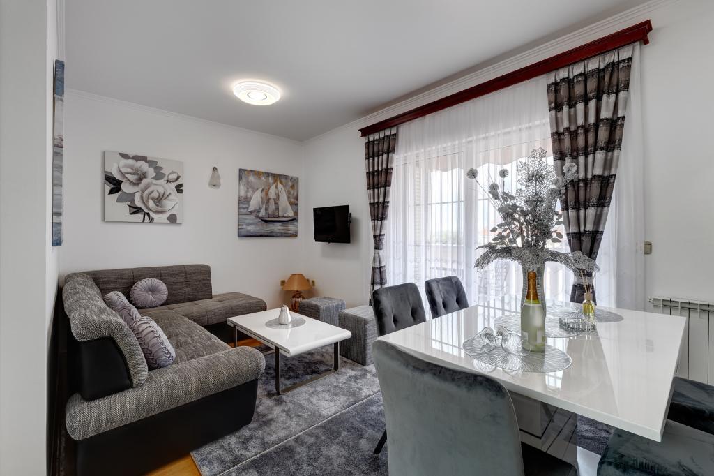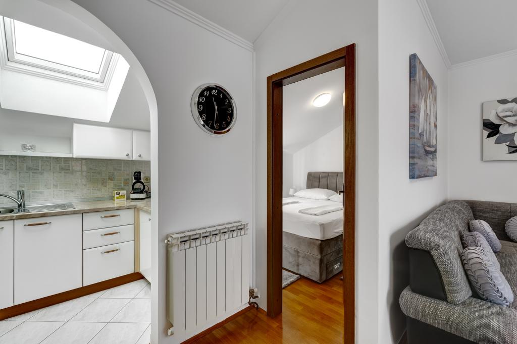 Les appartements Račić sont situés à Selci, au 135 rue Maršala Tita, à moins de 100 mètres de la mer et de la plage. Les plages, magnifiquement aménagées, regorgent de restaurants, de cafés et proposent la location de transats et de parasols. Vous avez le choix entre des plages de galets, de béton ou de sable. Les appartements, à l'instar de la maison, sont luxueusement équipés et décorés avec goût, et impeccables. Le jardin de la maison est agrémenté de plantes méditerranéennes et un barbecue est à la disposition des hôtes. Un parking sécurisé est également disponible dans le jardin. Chaque appartement dispose d'une terrasse avec vue sur la mer et les îles, ainsi que d'une climatisation intégrée (à éteindre lorsque vous quittez l'appartement pour la ville ou la plage) et d'un store (à fermer lorsque vous êtes absent et en cas d'intempéries). Veuillez consulter les disponibilités, régulièrement mises à jour, et la liste des prix. Un forfait ménage unique de 60 € est à prévoir et n'est pas inclus dans le prix de la location.
