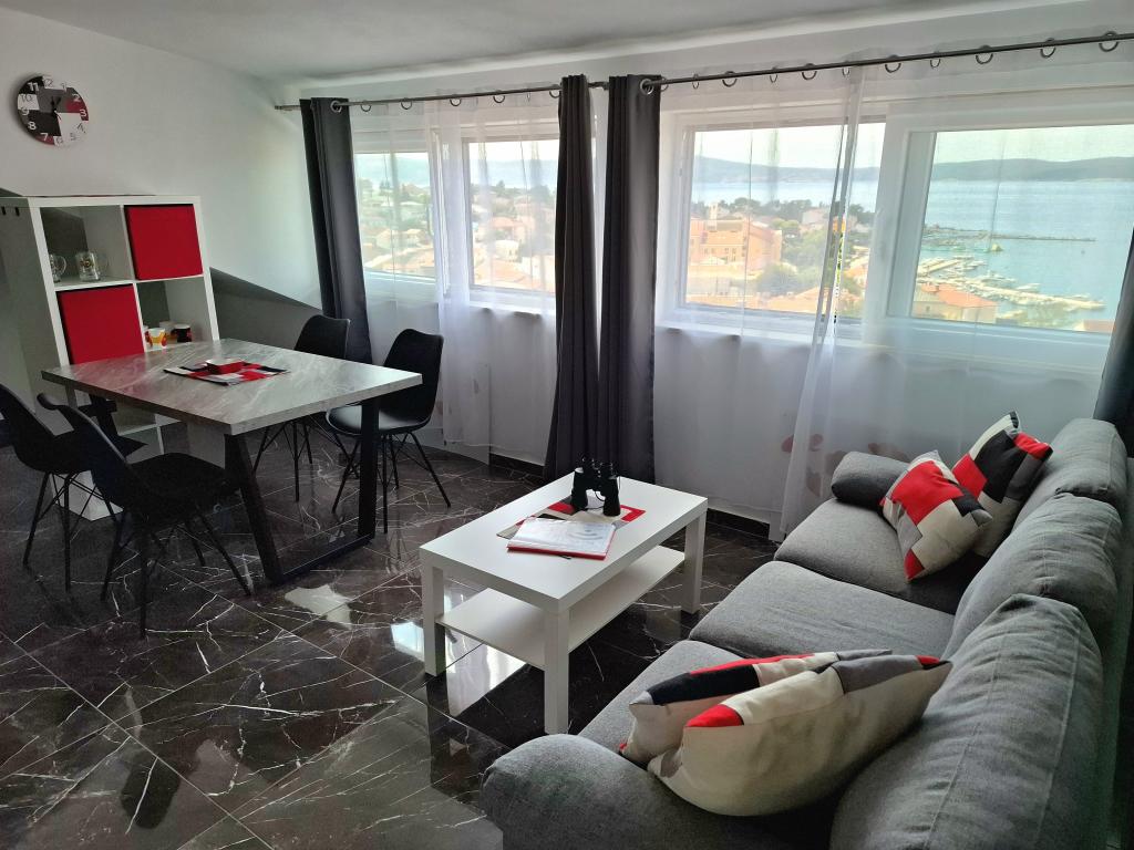 L'appartement récemment rénové avec une belle vue sur la mer est situé dans le centre de Selc, une ville pittoresque près de Crikvenica. Le centre-ville, la place, les cafés, les restaurants et les plages ne sont qu'à quelques minutes à pied. L'appartement se trouve à une centaine de mètres du centre ville et de la plage. Le prix de l'appartement comprend le parking dans la cour, la climatisation et la connexion Wi-Fi.