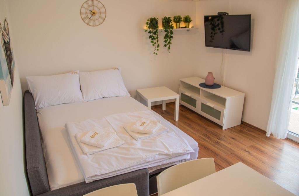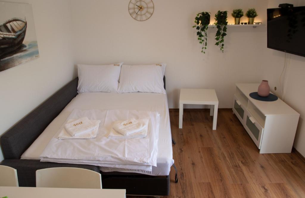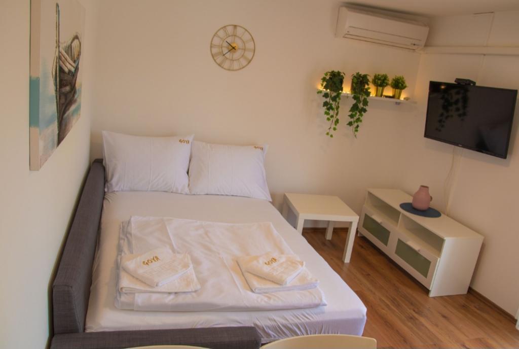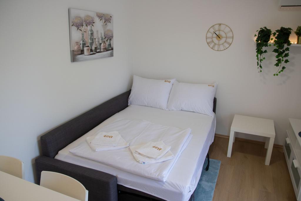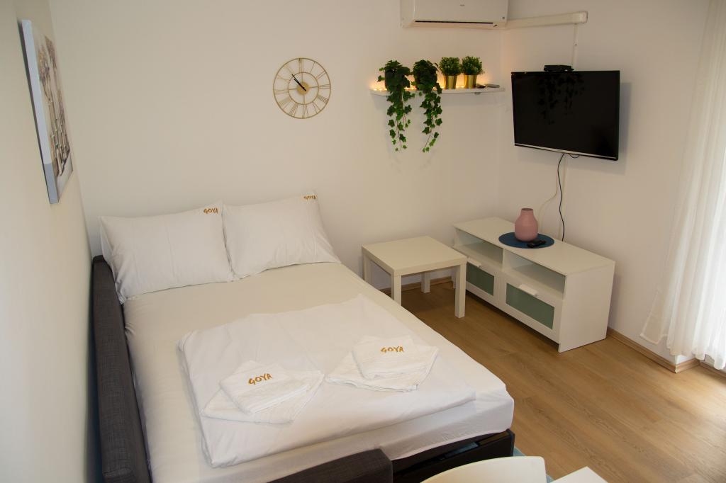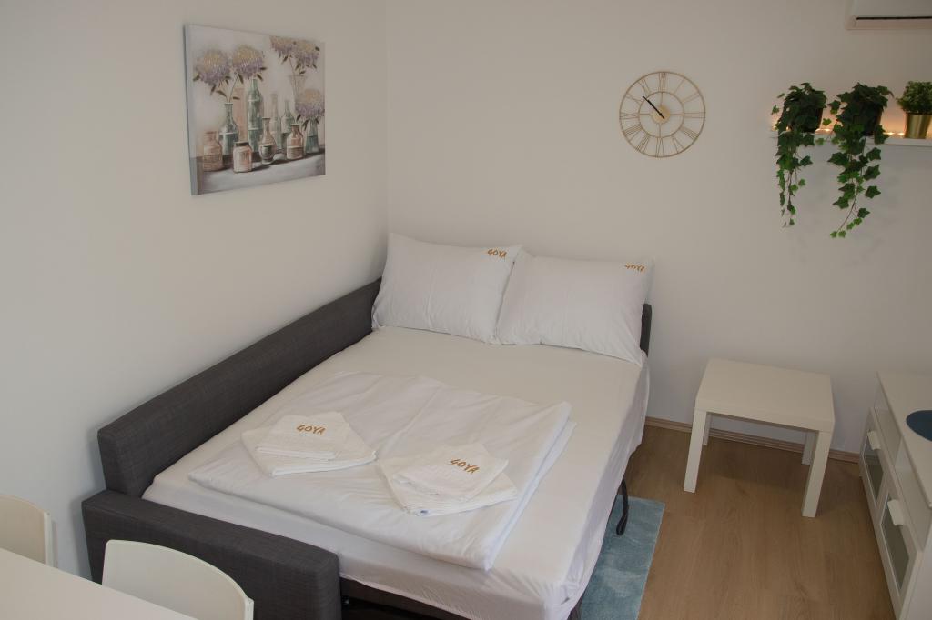 Les appartements Goya sont situés à Selc, dans le comté de Primorje-Gorski Kotar, en plein centre de Selc et à proximité de la plage de Polača. Les logements sont climatisés et offrent une vue sur la mer. Ils comprennent du carrelage au sol, une salle de bains privative, une télévision à écran plat, une connexion Wi-Fi gratuite, un bureau, un salon, une cuisine équipée et un balcon. Tous les logements comprennent également un coin salon et un coin repas. L'appartement dispose également d'une terrasse. La plage de Polača est à 50 mètres de l'appartement Goya et les plages de Rokan et Poli mora sont à 400 mètres. L'aéroport le plus proche, l'aéroport de Rijeka, est situé à 26 km de l'établissement. Une navette gratuite depuis/vers l'aéroport est disponible.