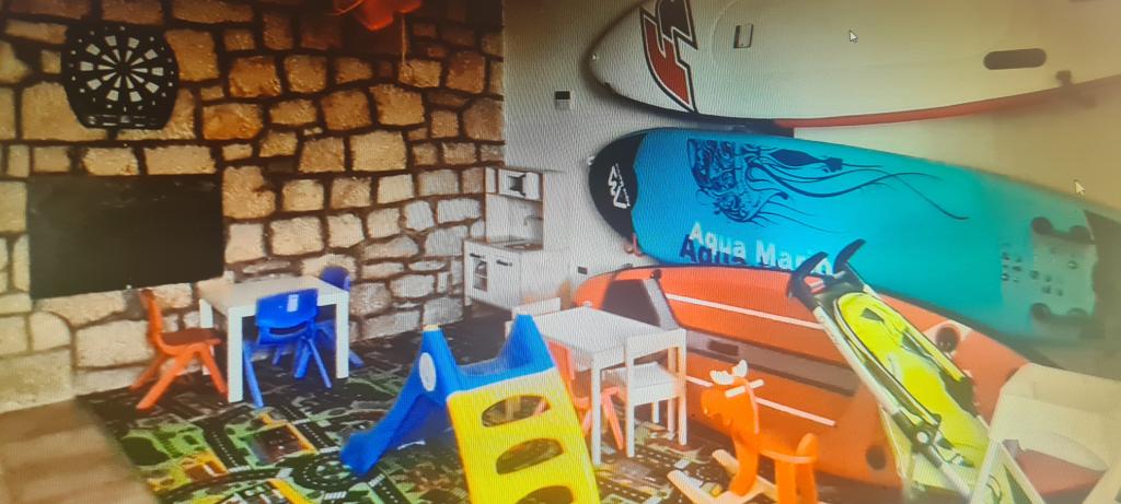 Nous offrons à nos hôtes des équipements supplémentaires tels que des chaises longues et des parasols (inclus dans le prix) qu'ils peuvent emporter à la plage devant la maison, des vélos pour adultes et enfants, des planches de surf, des kayaks, une salle de jeux pour enfants, la climatisation, et plus encore.