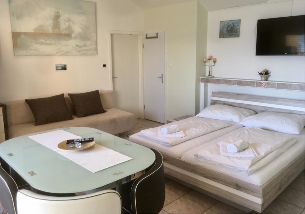 L'appartement est propre, bien agencé, meublé avec goût et bien équipé. Des transats, des parasols, des planches, des vélos et une salle de jeux pour enfants sont à votre disposition. Outre son emplacement (au premier rang face à la mer), nous sommes ravis de la gentillesse de Branka, notre hôtesse, toujours à votre disposition. Discrète, joyeuse, bienveillante et chaleureuse, Mme Branka est un exemple pour tous les locataires de ce que devrait être un bon hôte. Nous le recommandons à tous, petits et grands, ainsi qu'aux familles avec enfants. Le petit-déjeuner inclus est varié et adapté à tous les goûts.