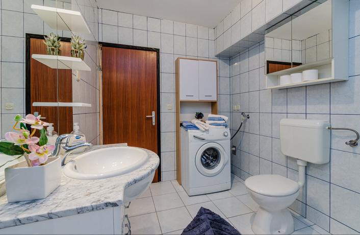Appartements joliment décorés à Selce, à environ 4-5 minutes à pied du centre-ville et de toutes les commodités importantes : place principale, banque, poste, boulangeries, supermarchés, marché, offices de tourisme, cafés et restaurants avec terrasses en bord de mer, etc. De la maison à la plage, il faut compter environ 8 à 10 minutes à pied le long du littoral. Les appartements sont situés dans une maison familiale, dotée d'un parking privé et d'une petite cour avec jardin.