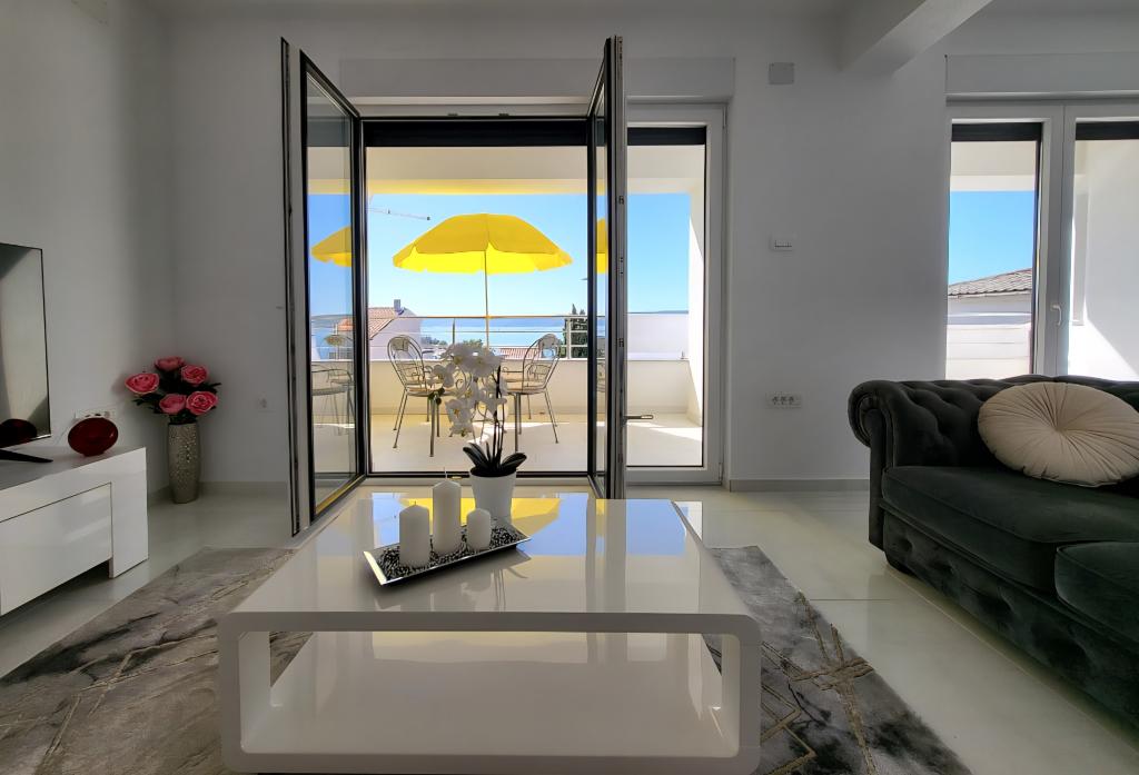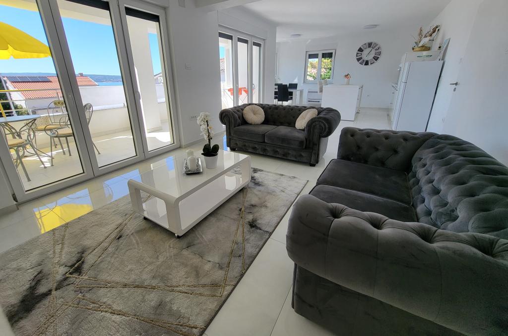 Appartements neufs au centre de Selce, près de Crikvenica, situés au rez-de-chaussée surélevé et au 1er étage d'un immeuble. Spacieux et lumineux, ils se composent de deux chambres, une salle de bains, un couloir, une cuisine ouverte sur le séjour et la salle à manger, ainsi qu'un balcon offrant une vue imprenable sur la mer et la plage. À seulement 2 minutes à pied du centre-ville, des commerces, de la promenade, de la plage, des restaurants et des cafés, un parking est disponible dans la cour de l'immeuble. La climatisation, le Wi-Fi et le parking sont inclus dans le prix de la location. La taxe de séjour et le ménage sont également compris. Les animaux de compagnie ne sont pas admis.