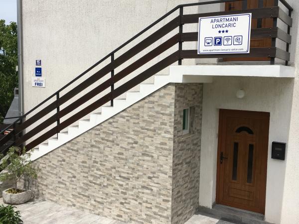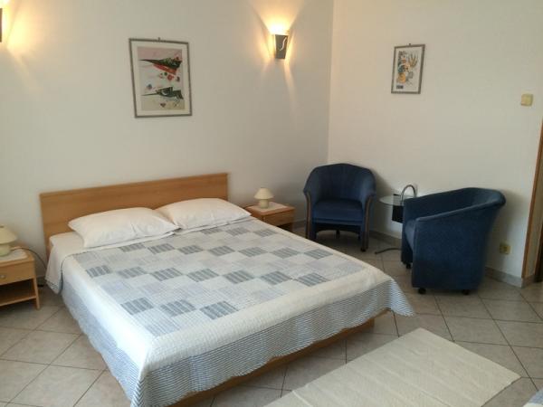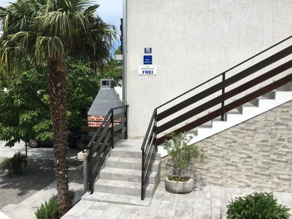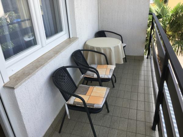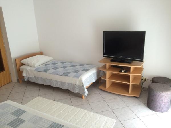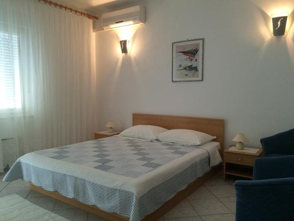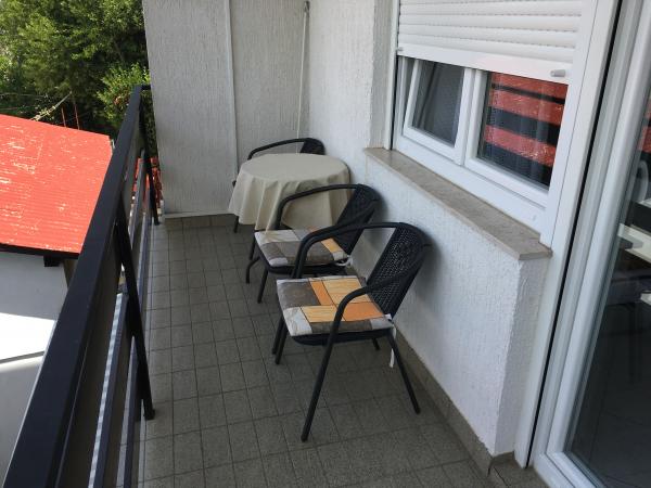 Les appartements sont situés dans une maison de famille au premier étage. Chaque appartement dispose d'une entrée séparée, balcon et parking dans la cour avant. Dans la cour derrière la maison sont disponibles pour balançoire et toboggan pour les enfants. Les appartements se composent d'une chambre avec trois lits (lit bébé ou lit supplémentaire), cuisine entièrement équipée avec coin repas, salle de bains avec WC. Les appartements sont équipés de la climatisation et la télévision par satellite, et il est libre utilisation de l'Internet.