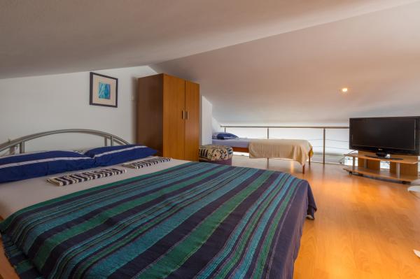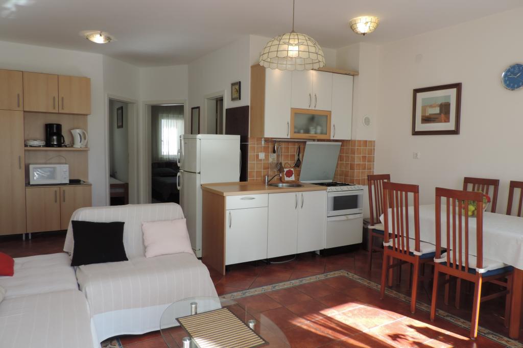 Deux chambres odzielne. Dans l'un des deux lits pour les enfants, l'autre grand lit king size. Salle de douche. Séjour avec coin repas et une kitchenette séparée, une ll du lieu, réfrigérateur, congélateur, couverts, verres et tasses et autres. Climatisation. La vue depuis le balcon de la mer et le magnifique panorama des bungalows dans un climat méditerranéen. Place de parking. Point de départ idéal, à proximité de la mer où il est rare plage de sable fin, un beau boulevard avec le climat exquis. L'hôte est un gars charmant, sympathique, qui présente ses invités dans l'atmosphère méditerranéenne de l'hospitalité. barbecue collectif, chansons partagées, des rencontres internationales, qui viennent enrichir le plan culturel. ville Selce a quelque chose pour tout le monde intéressant. Parfait pour les soirées romantiques ou pour ceux qui recherchent plus extrêmes impressions flex. Il y a de la plongée, le ski nautique et parachute d'un bateau à moteur. Un mot d'endroit charmant. Je recommande à tout le monde. Nous y retournerons certainement.