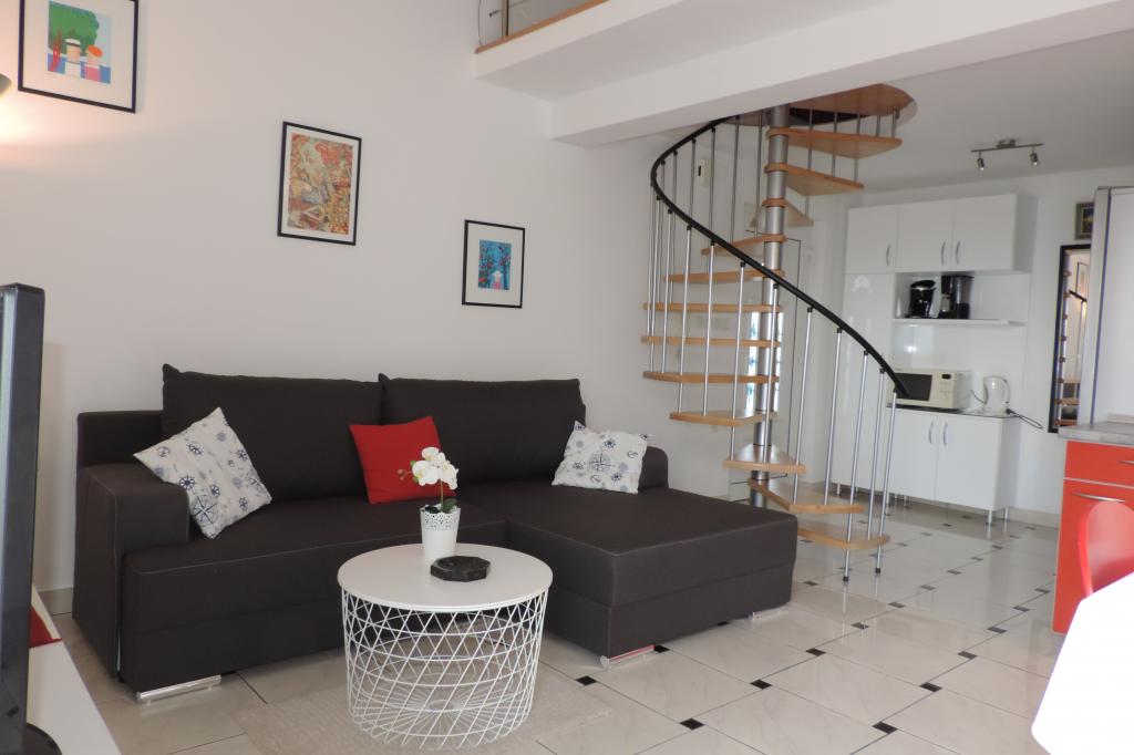 Nous avons été personnellement pris en charge par M. Antun Stivic dans la ville voisine de Crikvenica et emmenés à l'appartement. Nous étions 4 personnes. L'appartement était équipé de tout (lave-linge, sèche-cheveux, fer à repasser, serviettes, ...). Pour 4 personnes (2 adultes, 2 enfants) cet appartement est suffisant par taille. L'hôte et sa femme bien vivante vivent juste en dessous et sont toujours disponibles et utiles. Le voyage en bateau offert par Antun en valait vraiment la peine. Ce qui était particulièrement agréable, c’est l’invitation d’Antun et de sa femme à dîner, chez vous en privé. Sa femme est une excellente cuisinière. C'était de loin le meilleur repas pendant notre séjour de 2 semaines. Même au départ anticipé, Antun a insisté pour nous dire au revoir. Pour les personnes antisportives, le chemin vers la plage et le dos est épuisant. Comme il n'y a pas de plage de sable à Selce, les tapis de bain sont un avantage, mais vous pouvez facilement les acheter chez Promeda. Dans l'ensemble, un appartement vraiment sympa et chaleureux et serviable, rien ne manquait. Merci!