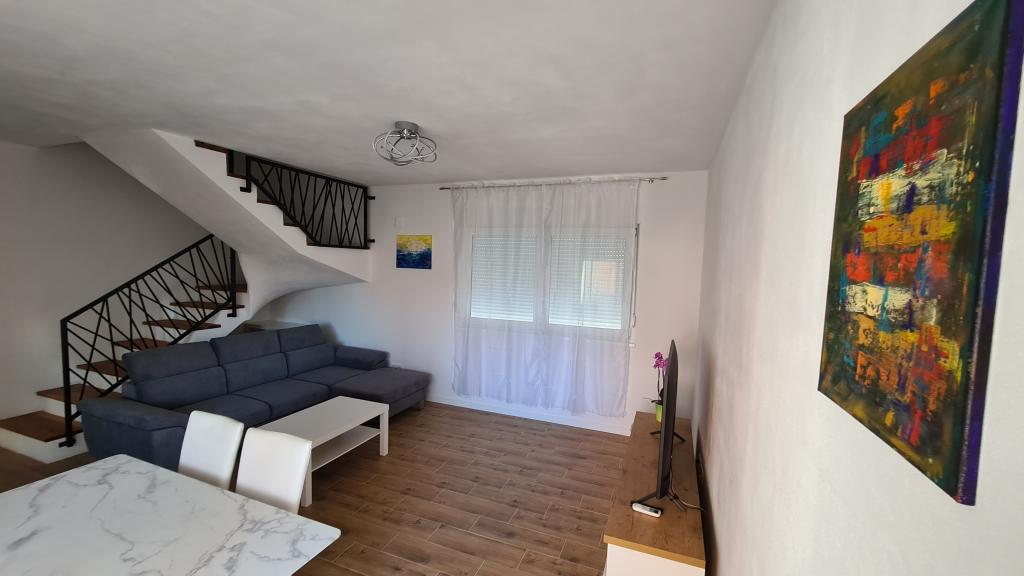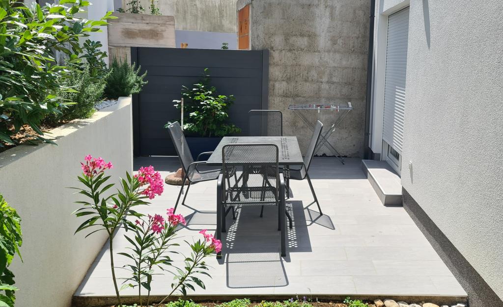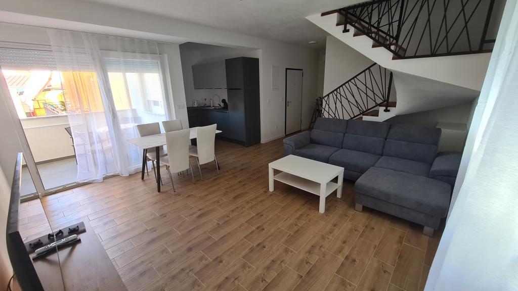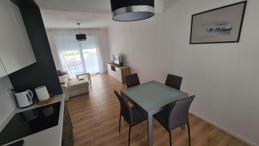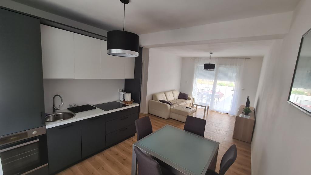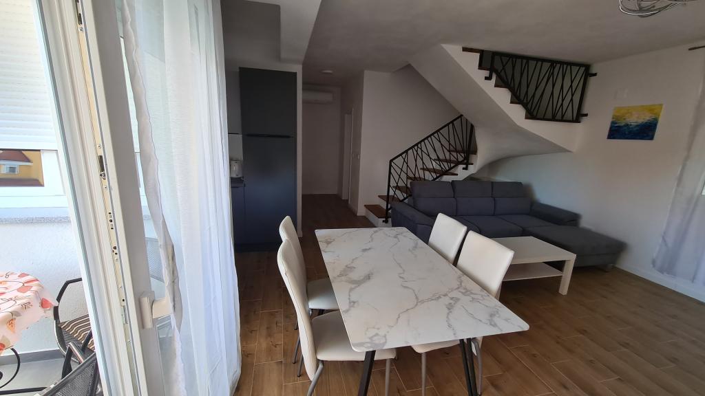 AP-Rez-de-chaussée : Appartement neuf et bien meublé, idéal pour de belles vacances. L'immeuble résidentiel se compose d'une entrée, d'une salle de bain, d'une cuisine, d'une terrasse privée et d'une salle à manger, d'un salon avec un canapé lit et d'une chambre avec un lit double. Les clients ont leur propre terrasse à leur disposition. Étage AP sur deux étages : Appartement neuf et bien meublé, idéal pour de belles vacances. Le bâtiment résidentiel est sur deux étages. Séjour au rez-de-chaussée (entrée, salle de bain, cuisine, loggia salle à manger et séjour avec canapé-lit) et coin nuit à l'étage (deux chambres avec lits doubles). Il est situé dans un emplacement exceptionnel, à deux minutes de la place centrale, à une minute des commerces et boulangeries et divers restaurants, et à trois minutes de la plage. Parking et Wi-Fi gratuits.