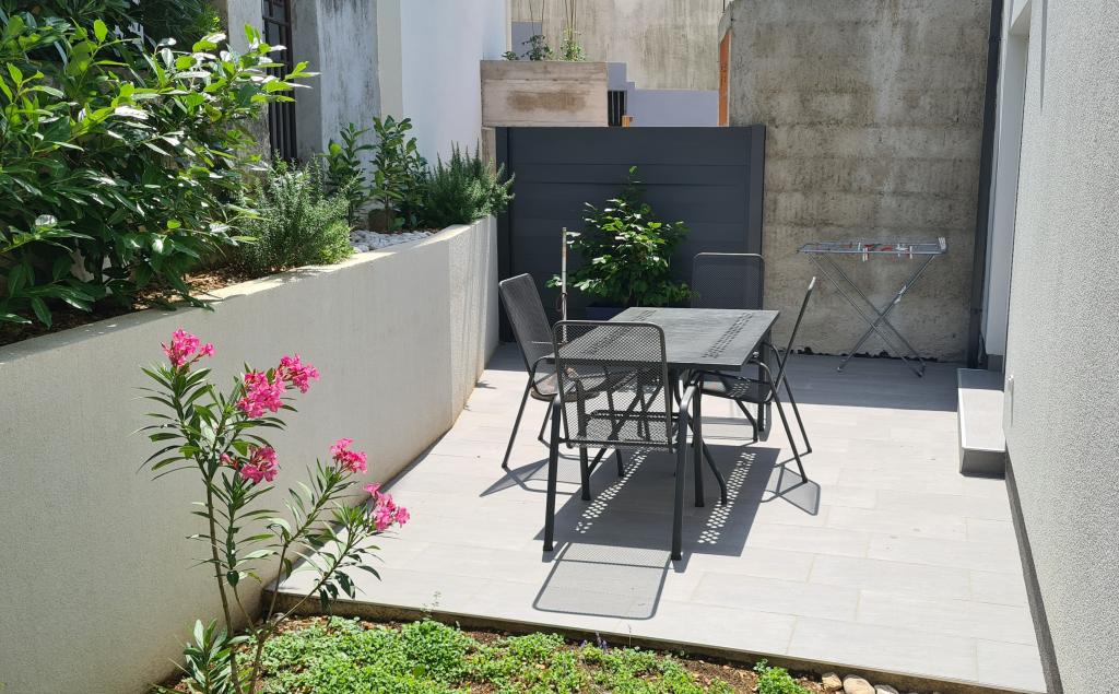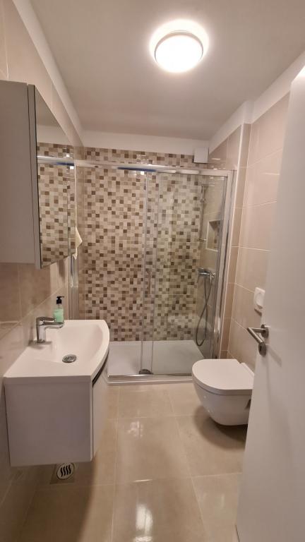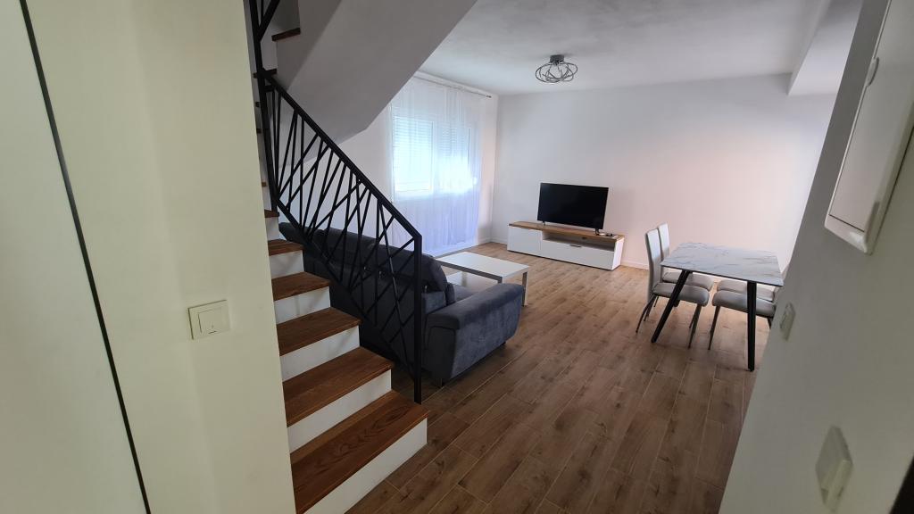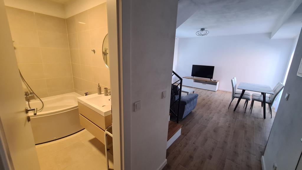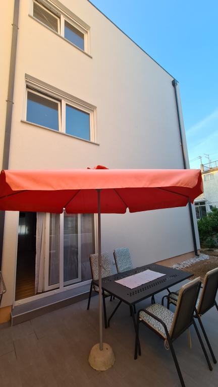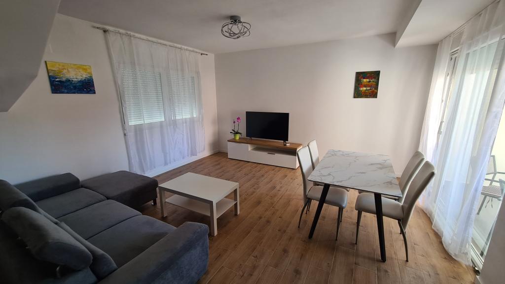 AP-Rez-de-chaussée : Appartement neuf et bien meublé, idéal pour de belles vacances. L'immeuble résidentiel se compose d'une entrée, d'une salle de bain, d'une cuisine, d'une terrasse privée et d'une salle à manger, d'un salon avec un canapé lit et d'une chambre avec un lit double. Les clients ont leur propre terrasse à leur disposition. Étage AP sur deux étages : Appartement neuf et bien meublé, idéal pour de belles vacances. Le bâtiment résidentiel est sur deux étages. Séjour au rez-de-chaussée (entrée, salle de bain, cuisine, loggia salle à manger et séjour avec canapé-lit) et coin nuit à l'étage (deux chambres avec lits doubles). Il est situé dans un emplacement exceptionnel, à deux minutes de la place centrale, à une minute des commerces et boulangeries et divers restaurants, et à trois minutes de la plage. Parking et Wi-Fi gratuits.