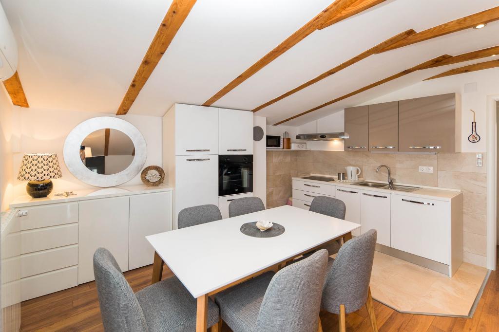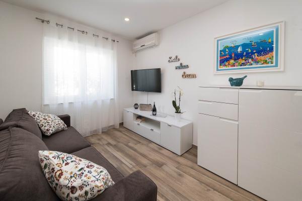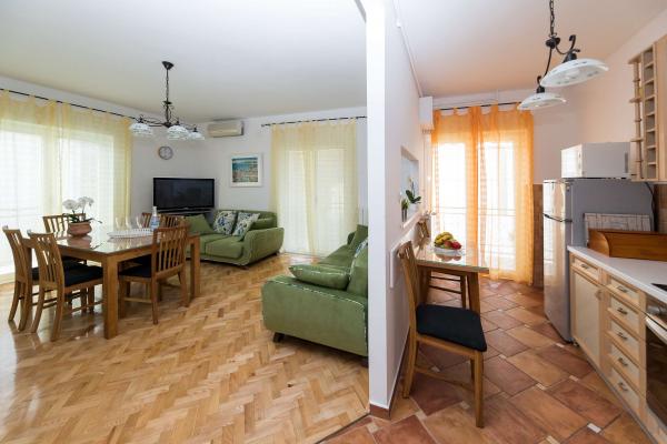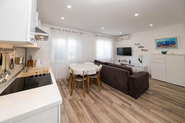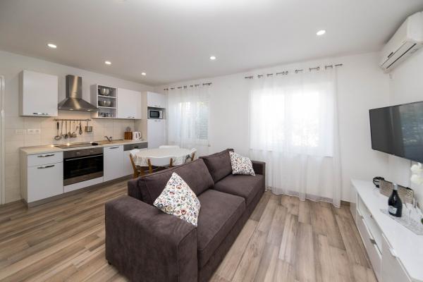 Nous avons passé de merveilleuses vacances ici en juillet 2023. Les propriétaires sont très gentils et arrangeants. Le propriétaire nous a montré notre appartement et nous a tout expliqué. Le propriétaire nous a permis de garer notre voiture devant l'appartement dès le matin. Excellente communication avec les propriétaires. Toute la maison est belle, aménagée, entretenue, cour pleine de fleurs, partout très propre. Nous avions une intimité totale, la paix. L'appartement est flambant neuf, moderne et joliment meublé, très propre et assez spacieux. Deux climatiseurs, un lave-linge et un lave-vaisselle étaient excellents. Nous avons également utilisé un fer à repasser et une trousse de premiers secours. La cuisine est bien équipée, rien ne manquait. Cinq personnes s’y sentaient bien. Nous avons utilisé le balcon avec vue sur Selce, la terrasse est idéale pour sécher les objets mouillés de la plage. L'appartement dispose même d'une pièce supplémentaire pour les structures gonflables, l'équipement de natation et les scooters. L'appartement est super. On apprécie la belle proximité du centre, du commerce, du marché aux fruits et légumes, le tout à moins de 2 minutes à pied. Plage de Poli Mora à 5 minutes à pied. La femme de ménage est très gentille avec nous et les enfants, chaleureuse. Nous avons déjà une réservation pour l'été 2024. Nous attendons avec impatience et recommandons ce magnifique logement.