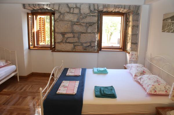 La Villa Angelina est située au centre de Selc, dans une ruelle tranquille en pierre, à 50 m de la mer. A proximité immédiate se trouvent un magasin, un marché, une poste, une banque, une boulangerie et de nombreux restaurants. La Villa Angelina permet à 4+5 personnes de séjourner dans deux appartements séparés. Au rez-de-chaussée et premier étage se trouve un appartement comprenant un grand séjour pour 8 personnes, avec une cuisine entièrement équipée (plaque de cuisson, réfrigérateur, lave-vaisselle, bouilloire, four micro-ondes, cafetière) et une chambre pour quatre personnes. Au deuxième étage se trouve un autre appartement entièrement équipé avec une chambre séparée pour quatre personnes. Il y a aussi une machine à laver dans la maison. Deux téléviseurs avec programmes Internet et connexion Wi-Fi gratuite sont disponibles. Le parking est sécurisé. La maison est entièrement climatisée. Au sommet de la maison se trouve une grande terrasse avec une belle vue sur la mer et la place principale. La maison peut être louée dans son ensemble ou chaque appartement séparément.