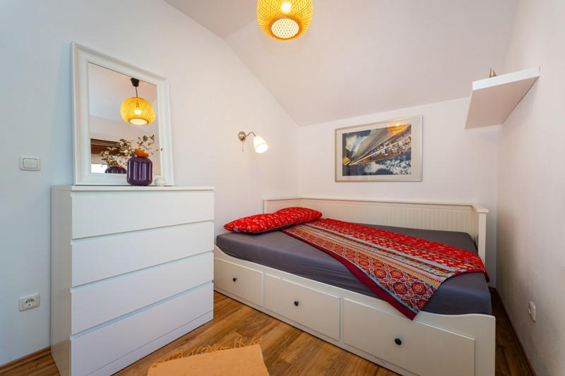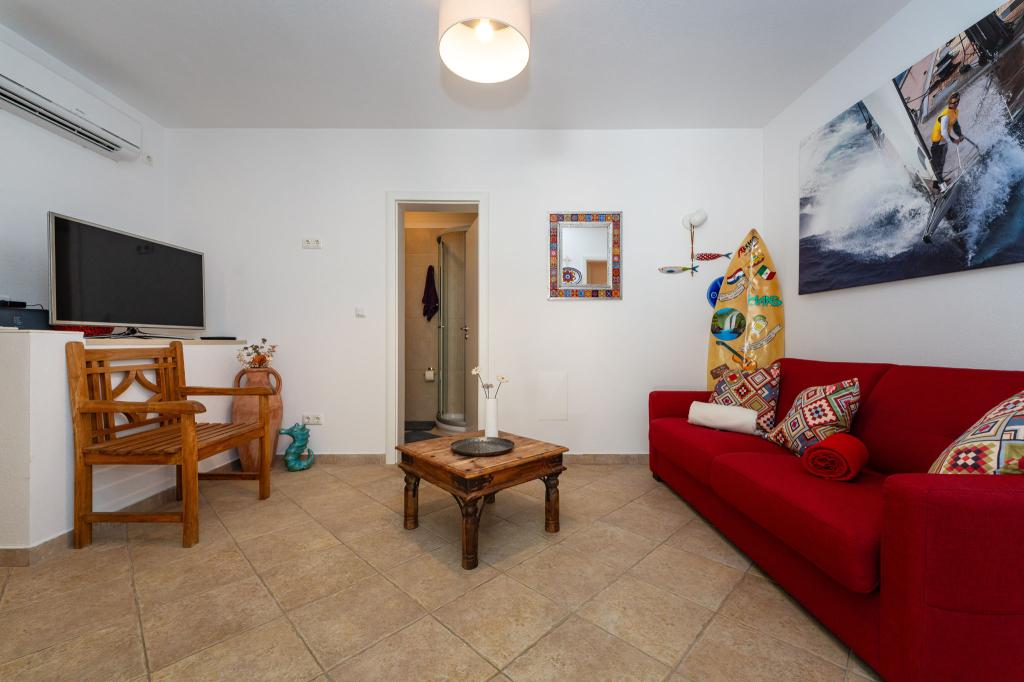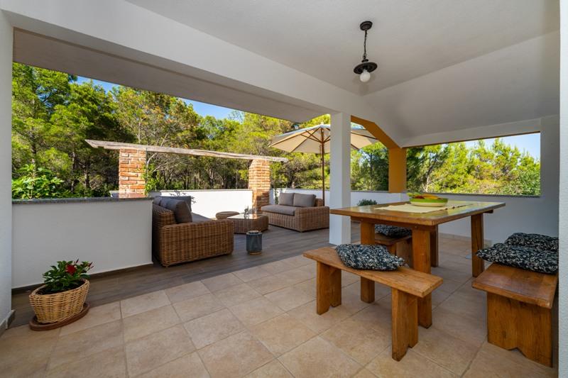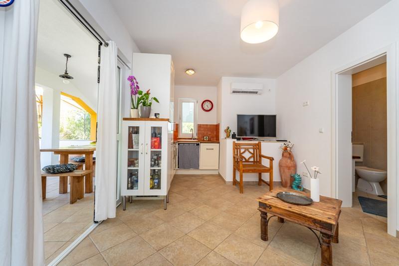 L'établissement est situé dans un endroit calme, à côté d'une pinède et non loin du centre de Selin (250 m). Un choix idéal pour des vacances tranquilles en famille ou des vacances en couple, loin du bruit et de la foule du quotidien. Devant la maison se trouve un jardin joliment aménagé où vous pourrez faire un barbecue ou vous détendre sur des transats à l'ombre des pins. Il y a 2 appartements dans le bâtiment - 1 appartement pour 4 personnes (2 chambres) et 1 appartement pour 2 personnes. Ils sont équipés de tous les équipements nécessaires pour des vacances agréables et détendues. Chaque appartement dispose d'une télévision par satellite, de la climatisation et d'une connexion Wi-Fi. Une douche de jardin est également disponible.