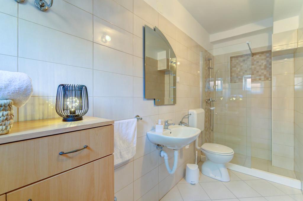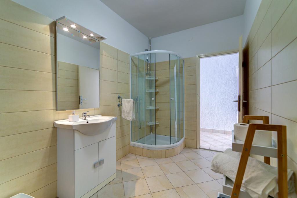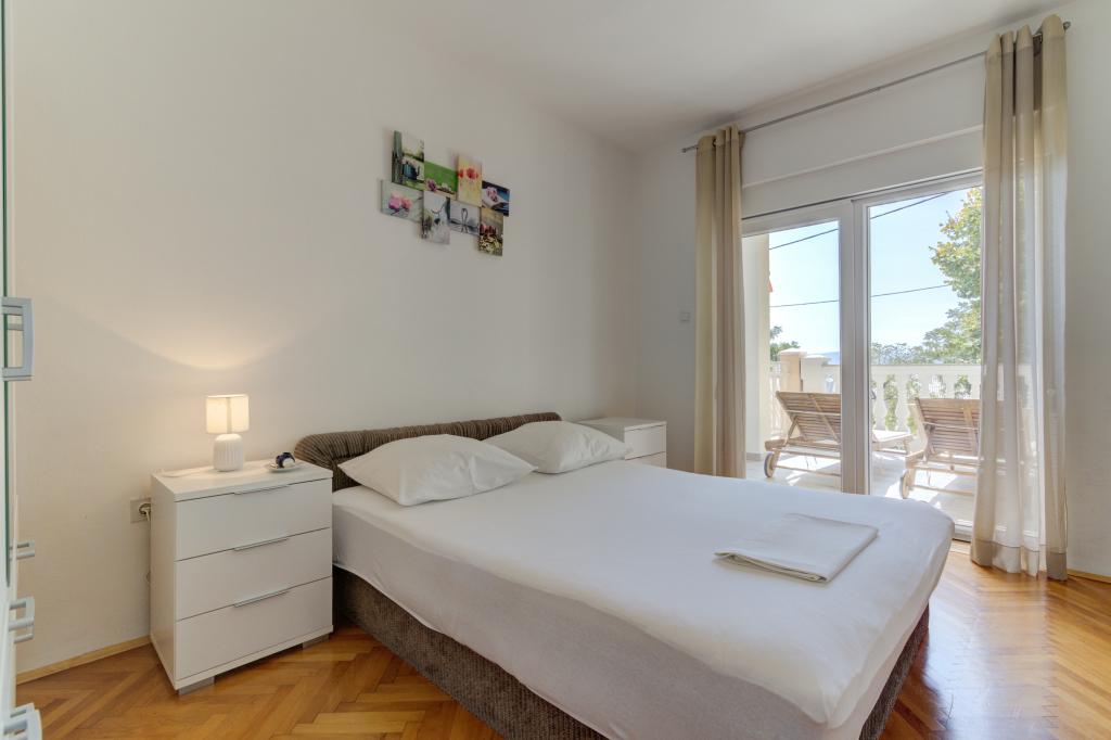 L'Appartement Marta (superficie 100 m2) équipé de façon moderne pour 7 personnes est situé au rez-de-chaussée d'une maison familiale entourée de verdure et dispose de deux grandes chambres avec lits doubles avec une belle vue sur la mer, une chambre spacieuse avec trois lits, deux salles de bains avec douche et WC, salon spacieux avec un lit d'appoint, salle à manger et cuisine reliée à un gazebo couvert et barbecue. Un grand gazebo couvert (superficie 40 m2) avec un barbecue et des sièges pour 8 personnes et deux terrasses (superficie 50 m2) avec vue mer équipées de sièges et de deux transats sont destinés uniquement aux hôtes de cet appartement. Devant l'appartement se trouve un jardin paysager avec deux grands arbres, gazon et fleurs et trois places de parking gratuites. L'établissement est situé dans un quartier calme de la ville, à 10 minutes à pied de la première plage et du centre-ville.