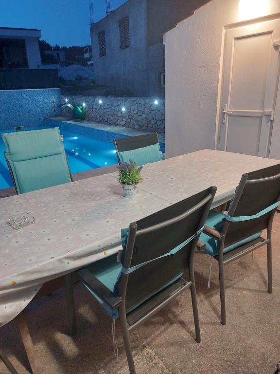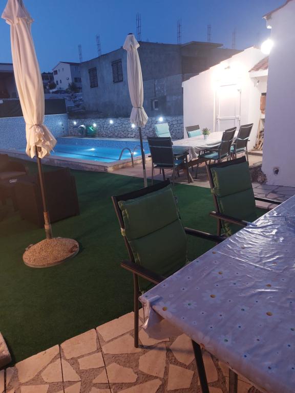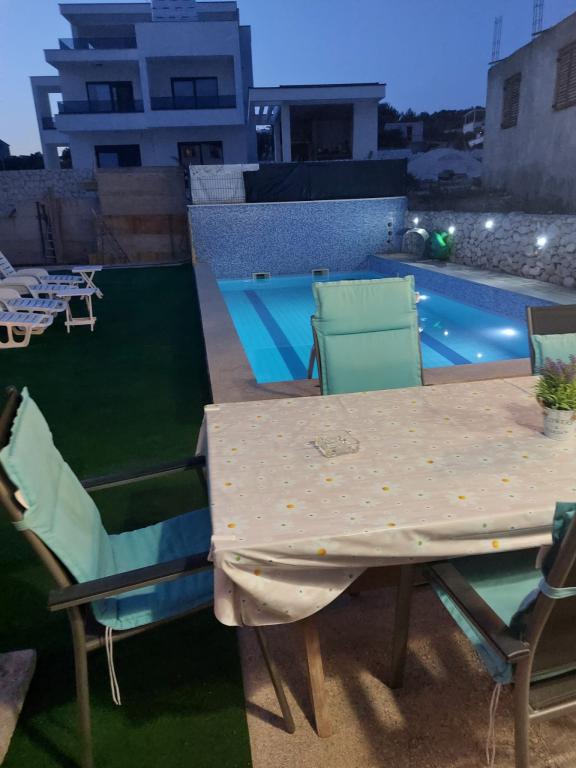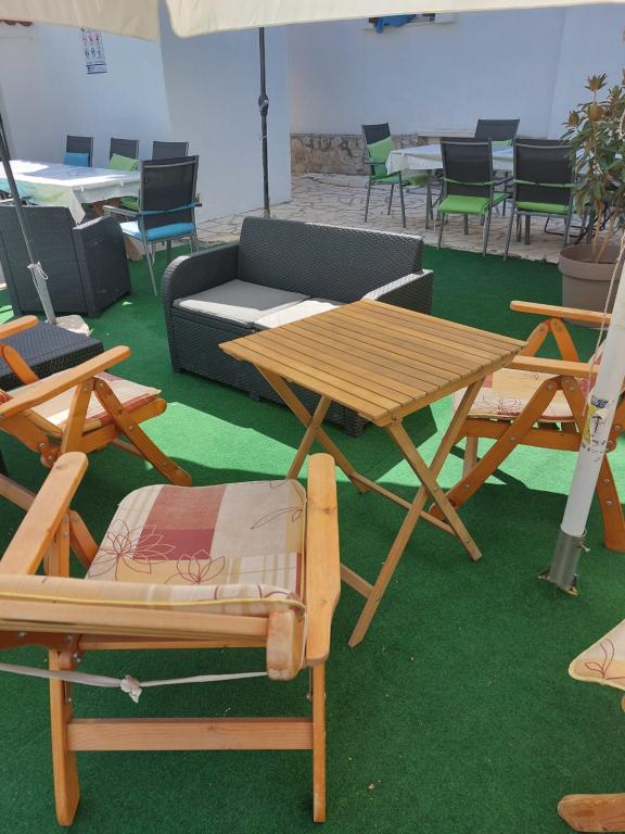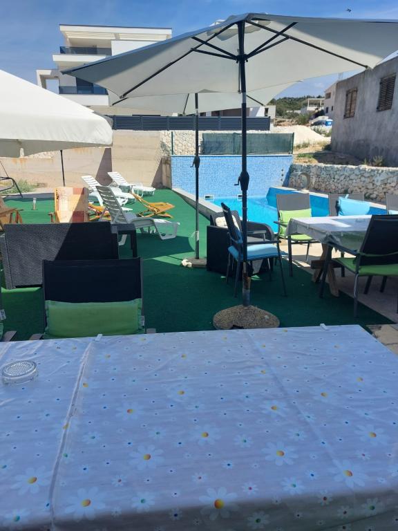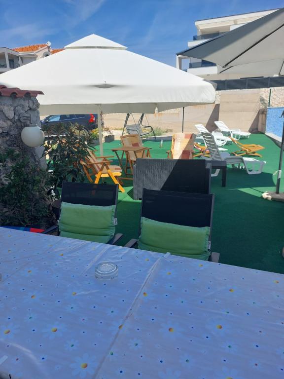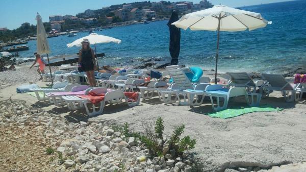 Quartier calme et tranquille. Chaises longues, parasols, kayaks disponibles sur la plage et tout cela pour le prix. Dans le jardin une piscine et un coin barbecue. Parking. A4 chambres spacieuses avec un grand balcon (nous avons passé la première semaine là-bas), A2 + 2 (deuxième semaine de séjour) un peu plus petites, des chambres propres. Propriétaires gentils, amicaux, serviables. Belle famille 2 + 2 (enfants de 7 et 11 ans). Pour le magasin et le bar 2 min. (seulement magasin et bar dans le village.À la plage maximum 1 minute.L'eau dans cet endroit très propre. Je recommande l'appartement Dinko à tout le monde.