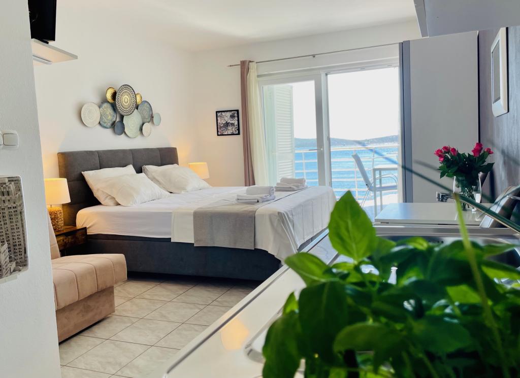Vue fantastique depuis le balcon, la mer est à environ 100 mètres. Eau cristalline, surtout le matin. L'appartement est plus que bien pour le prix, tout ce dont vous avez besoin est là. Et s'il manque quelque chose, la propriétaire Ivana le récupère immédiatement. Dans notre appartement, le réfrigérateur était un peu petit, le compartiment congélateur est minuscule. Encore un plein 5 étoiles, nous aimons beaucoup le reste.