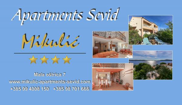 Sevid na moru, suffisamment caché de la foule de la ville, mais suffisamment proche pour tout voir. Un coin ensoleillé et caché de nature intacte, idéal pour de véritables vacances méditerranéennes. Bien que petite, Sevid a tout ce dont vous avez besoin : des magasins, des restaurants, des cafés, une mer limpide et de belles plages. Idéal pour les familles avec enfants pendant les chaudes journées d'été comme en hiver. Les appartements Mikulić sont situés sur le côté est de la péninsule de Sevid, à 20 mètres de la mer, avec une belle vue sur la mer, les îles environnantes et un jardin plein de verdure. Les appartements sont classés 4 étoiles et peuvent être qualifiés de véritable villa de vacances de luxe. Les clients ont accès à un jardin avec grill, un jardin méditerranéen, un parking, une plage avec un quai pour les bateaux. La plage de sable est très proche de la maison. nous offrons la possibilité de louer un bateau avec l'appartement (speedboat ou petit bateau). nous proposons également des pédalos, des jet skis, des sup boards, des vélos à la location. Accueillir!!!
