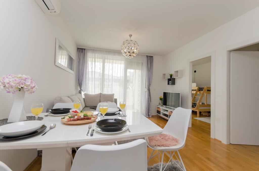 Un appartement entièrement et modernement équipé dans un quartier calme de la ville, composé de deux chambres, une cuisine avec salle à manger, un salon, une salle de bain et une terrasse, et un garage pour une voiture. Il est situé à 15 minutes à pied du vieux centre-ville. À seulement 1 km de la forteresse Barone, à 1,1 km de St. Ivan et à 900 mètres de la forteresse de St. Michel. L'appartement se trouve à 1 km de la plage de la ville de Banj. Le restaurant le plus proche se trouve à 500 mètres de l'établissement et le magasin le plus proche est à seulement 100 mètres. Le parc national de Krka se trouve à 8 km et le parc national de Kornati est à 40 km.
