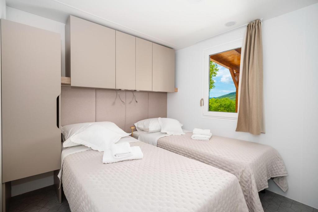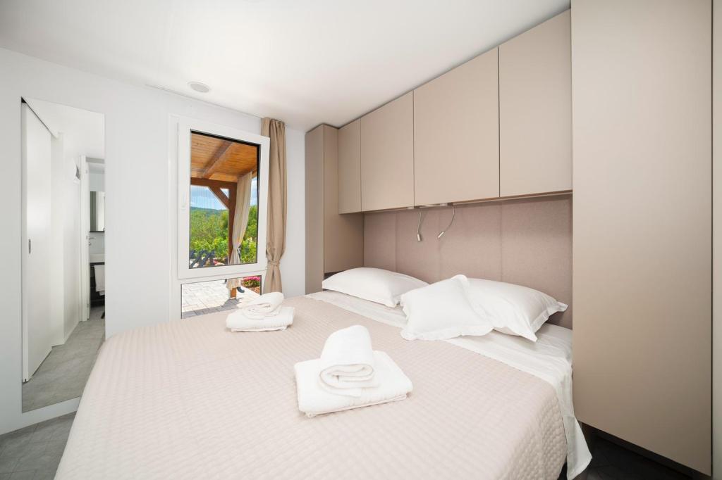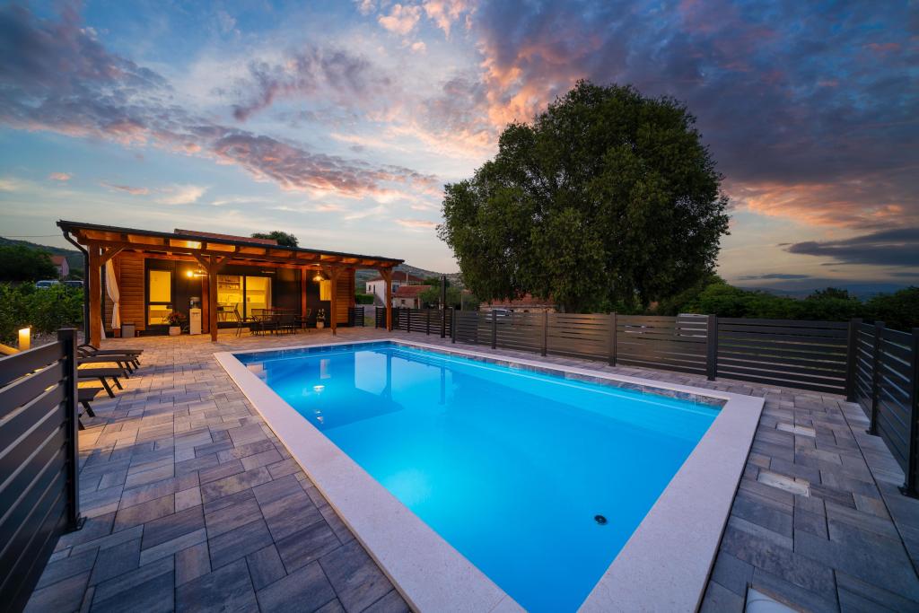 Mobil-home entièrement équipé et moderne, situé en pleine nature, à la campagne. Nous disposons d'une grande piscine chauffée de 4 x 8 m de profondeur, de 150 cm. Privée, elle est entourée d'une clôture et de verdure. Nous disposons d'un grand jardin, dont une partie est équipée d'un espace détente, d'une table de ping-pong et d'un trampoline pour les plus jeunes. La propriété est située à 23 km du centre-ville, à 20 km de la plage, à 35 km de l'aéroport de Split et à 30 km du parc national de Krka. L'entrée de l'autoroute est à 7 km à proximité. Šibenik est une ville riche en patrimoine historique et compte quatre cultures fortes.