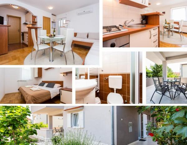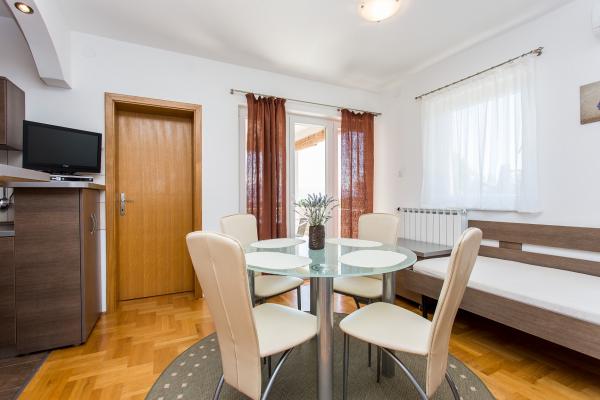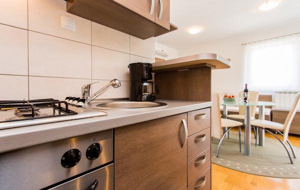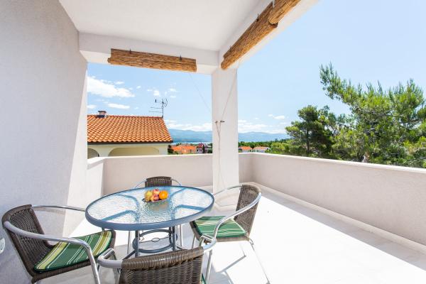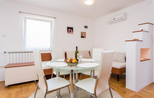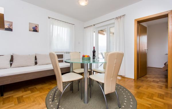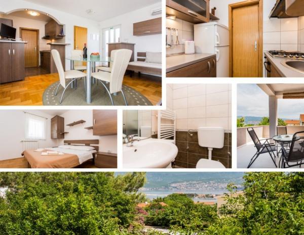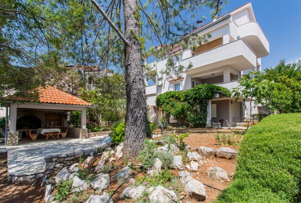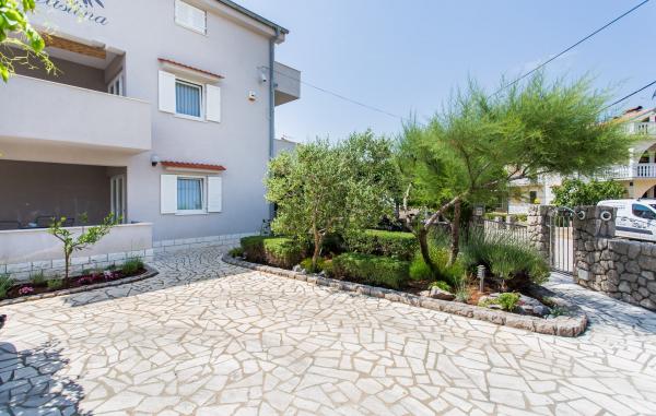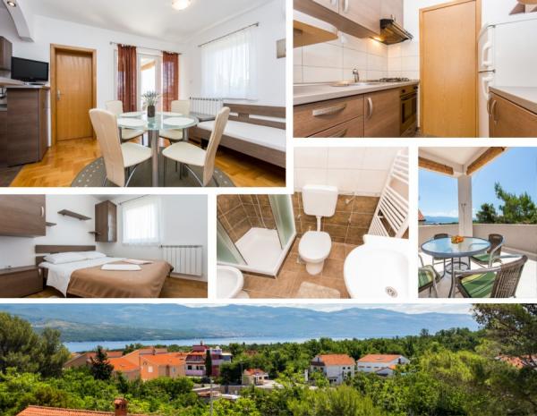 Notre maison familiale \Villa Maslina\ est située dans un quartier calme de Silo, sur la côte est de l\île de Krk. Il dispose de quatre appartements à la décoration moderne de type 2 2, catégorie quatre étoiles. Ils sont de la même taille et ont chacun une grande terrasse avec vue sur la mer, salle de bain, chambre et cuisine et salon. Elles sont équipées de climatisation, chauffage central, TV LCD avec récepteur satellite, coffre-fort, système d\alarme et Internet sans fil. Dans la cour devant la maison, l\un des six parkings ombragés protégera votre véhicule du soleil brûlant. Un système de vidéosurveillance externe est également là pour protéger votre propriété. Nous avons préparé un carrousel, des balançoires, des bouteilles et d\autres installations pour vos enfants afin qu\ils puissent profiter du jeu dans la nature. Dans le gazebo avec une grande cheminée et une petite cuisine, construite derrière la maison, vous pourrez profiter des grillades. Nous vous invitons à nous rendre visite et à ressentir toute l\énergie positive que nous avons intégrée à la maison et au jardin.