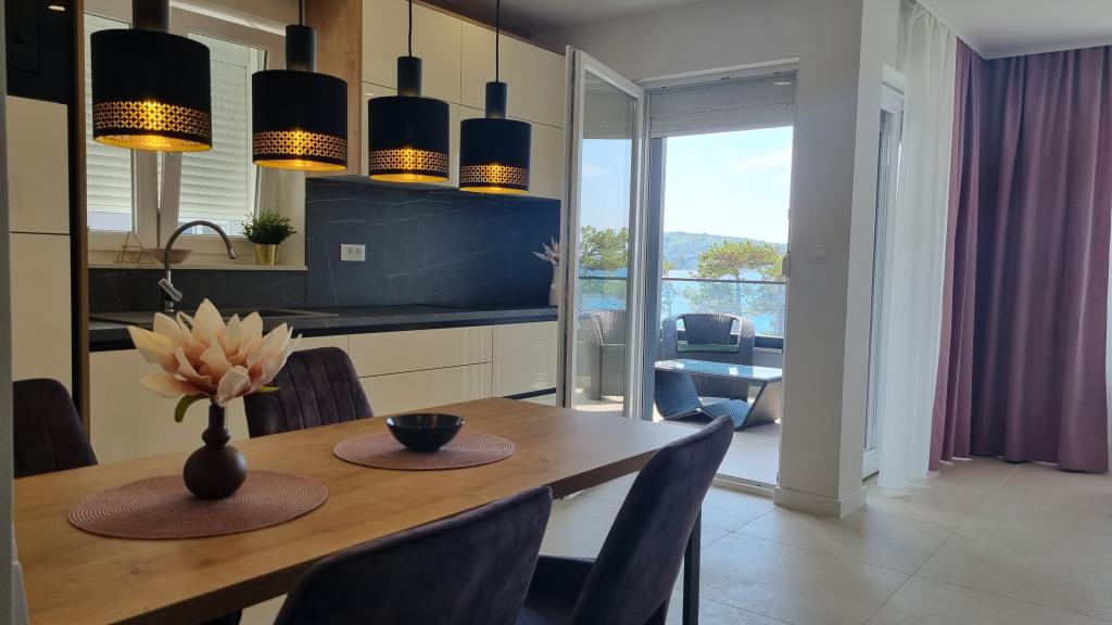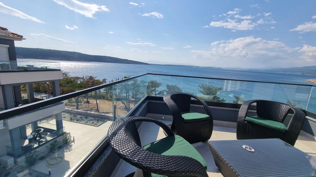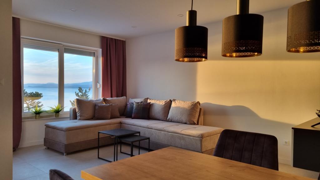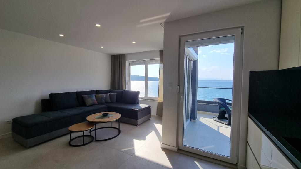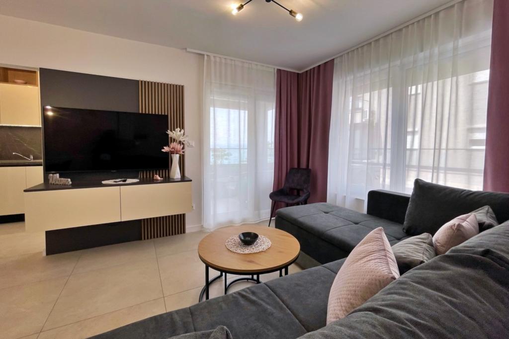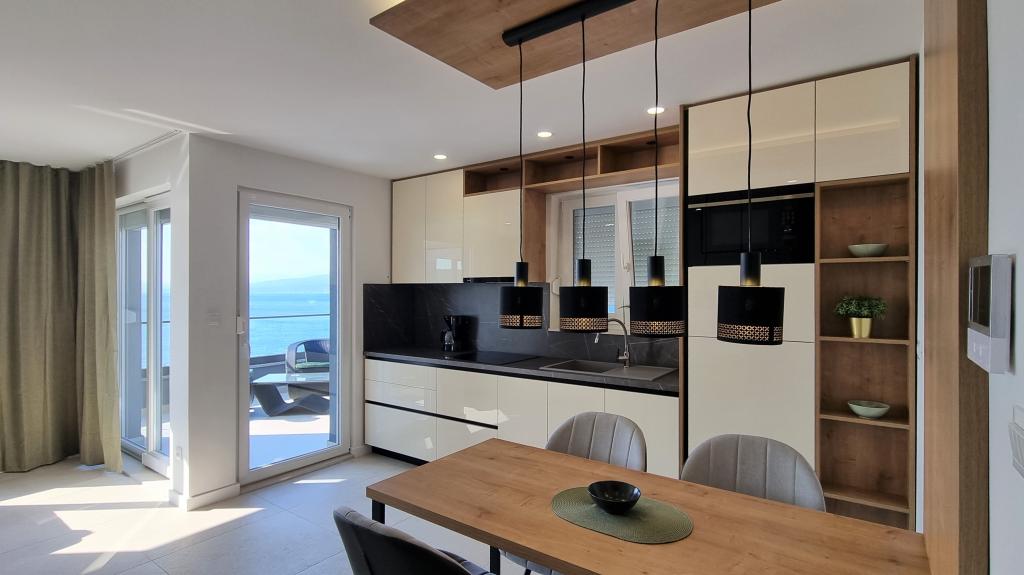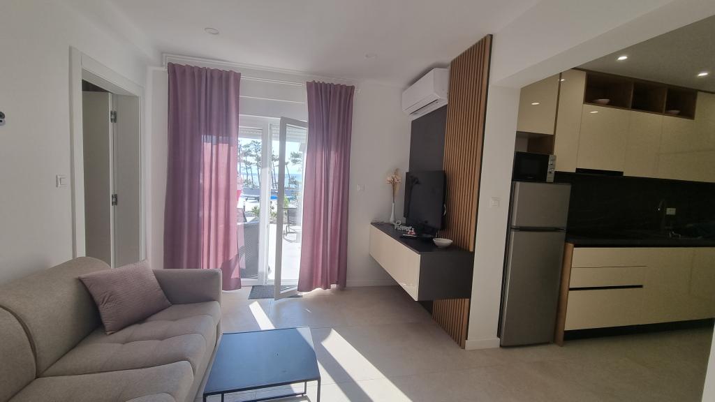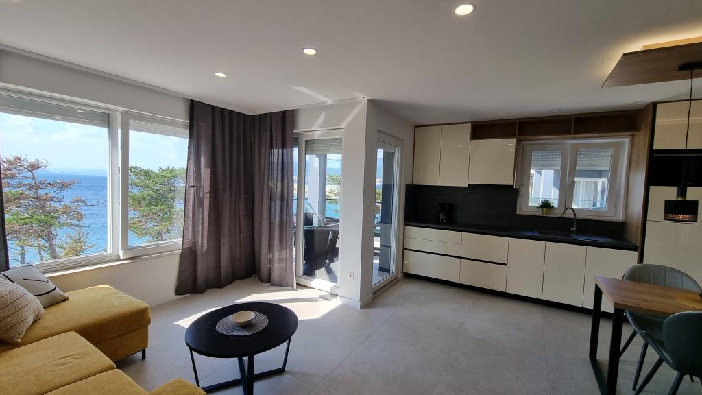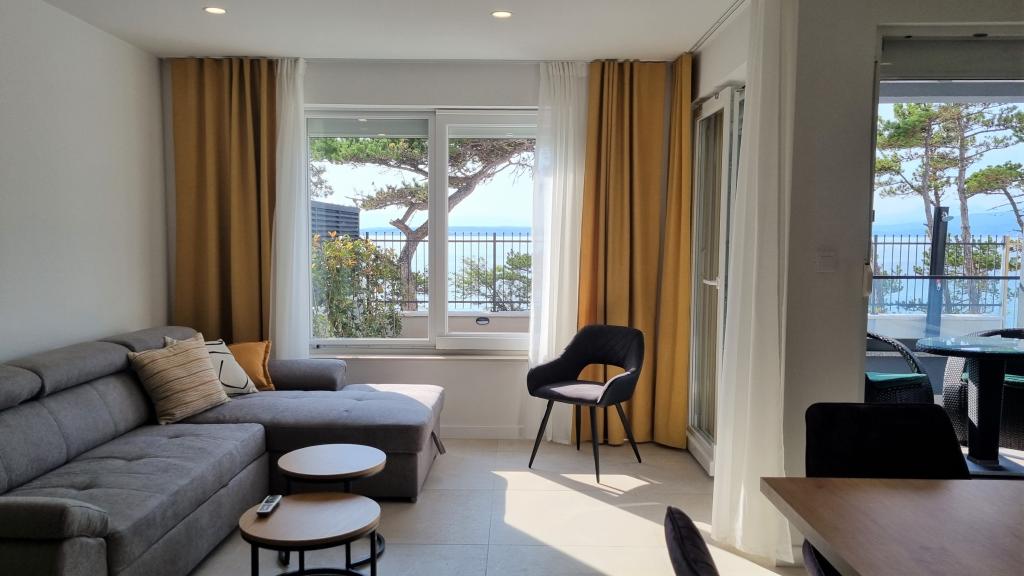 Ces appartements de luxe avec vue sur la mer sont situés dans un complexe d'immeubles dans un endroit calme. Tous les appartements sont équipés de façon moderne de deux, voire trois climatiseurs et de télévisions intelligentes dans les salons et les chambres. Le bâtiment dispose d'une grande piscine d'eau salée (36 m2) à usage commun, ouverte de mai à octobre, avec des températures qui atteignent généralement 20-26°C. Le bâtiment dispose d'un total de 12 appartements. L'immeuble dispose d'un parking privé entièrement clôturé. A proximité immédiate se trouve une grande plage de galets et dans le bâtiment adjacent se trouve un excellent restaurant qui propose également une sélection de spécialités locales. Tous les appartements sont équipés de plaques à induction, d'un réfrigérateur avec congélateur, d'une bouilloire, d'une cafetière, d'un grille-pain, d'un lave-vaisselle et d'un four micro-ondes. L'espace à côté de la piscine est équipé de chaises longues, de parasols et d'une douche extérieure. Une connexion Wi-Fi gratuite est disponible dans tout le bâtiment.