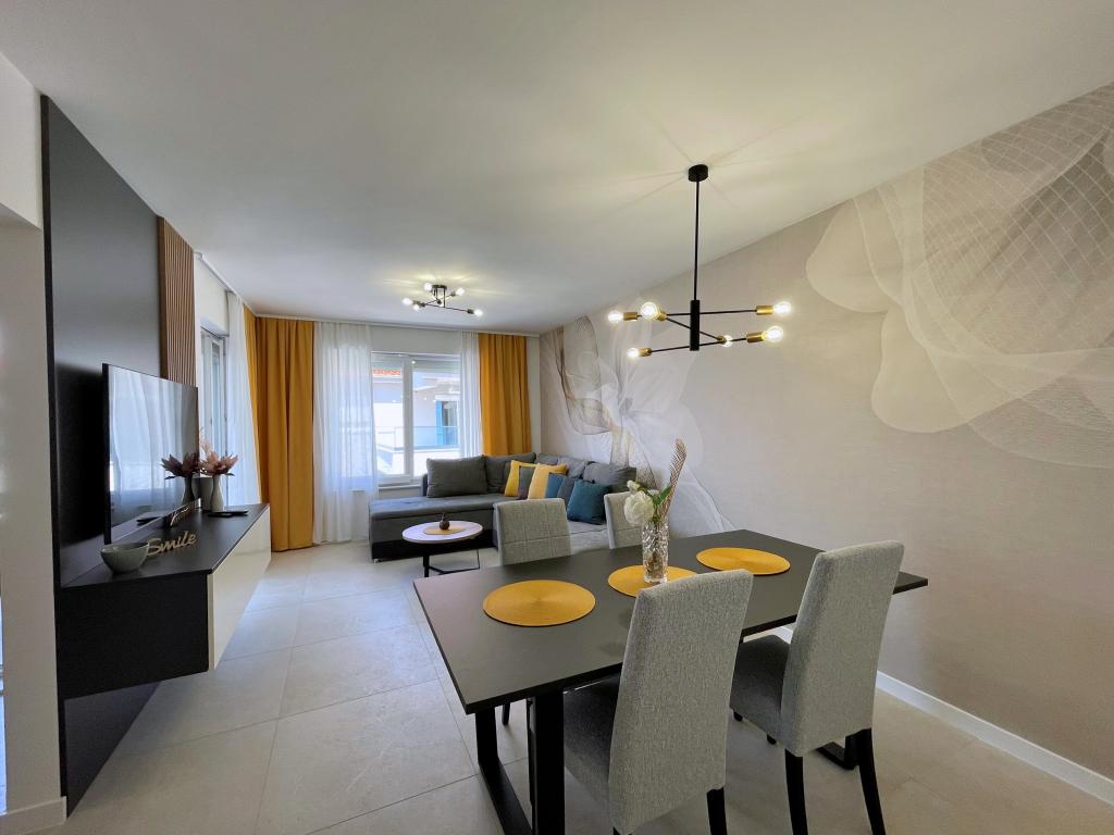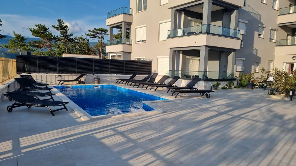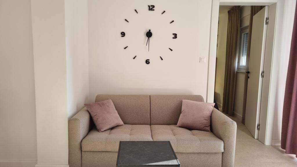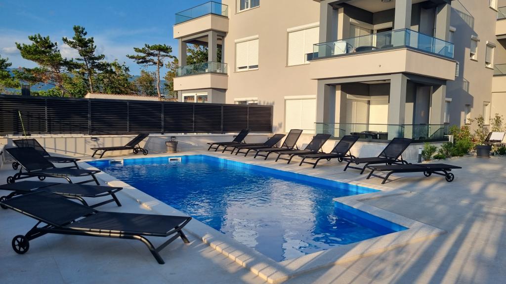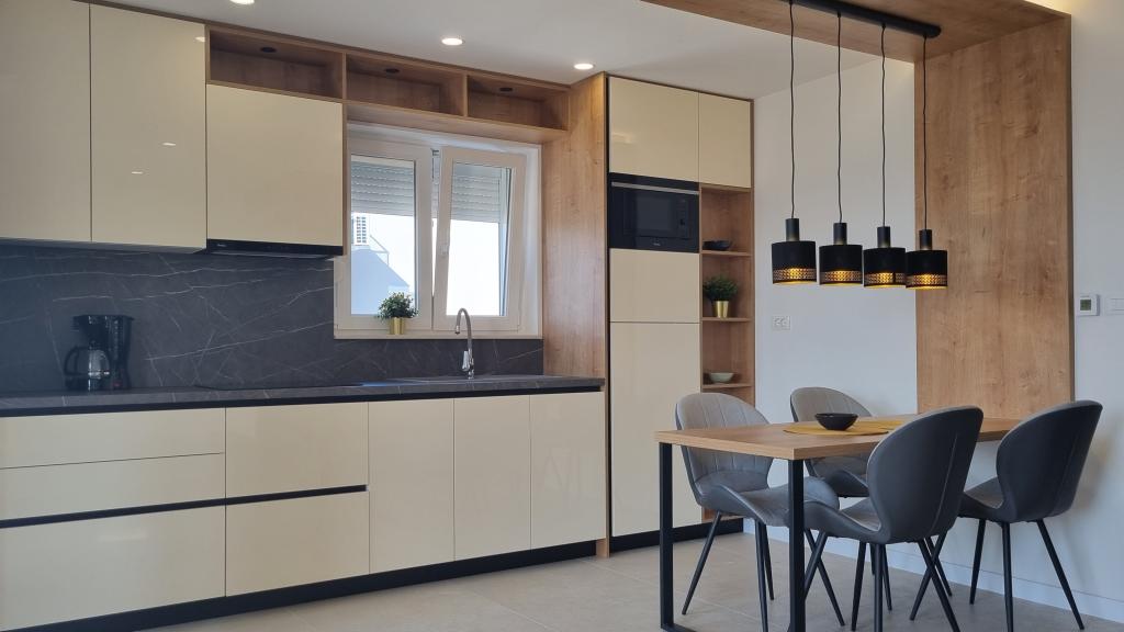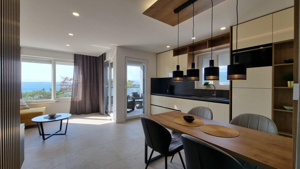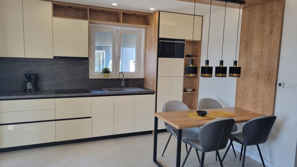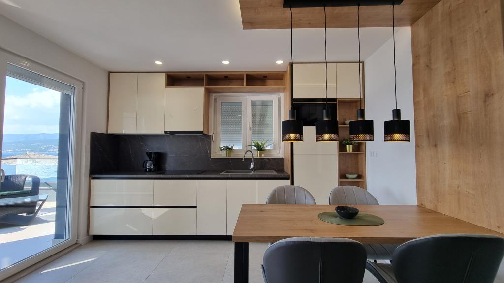 Ces appartements de luxe avec vue sur la mer sont situés dans un complexe d'immeubles dans un endroit calme. Tous les appartements sont équipés de façon moderne de deux, voire trois climatiseurs et de télévisions intelligentes dans les salons et les chambres. Le bâtiment dispose d'une grande piscine d'eau salée (36 m2) à usage commun, ouverte de mai à octobre, avec des températures qui atteignent généralement 20-26°C. Le bâtiment dispose d'un total de 12 appartements. L'immeuble dispose d'un parking privé entièrement clôturé. A proximité immédiate se trouve une grande plage de galets et dans le bâtiment adjacent se trouve un excellent restaurant qui propose également une sélection de spécialités locales. Tous les appartements sont équipés de plaques à induction, d'un réfrigérateur avec congélateur, d'une bouilloire, d'une cafetière, d'un grille-pain, d'un lave-vaisselle et d'un four micro-ondes. L'espace à côté de la piscine est équipé de chaises longues, de parasols et d'une douche extérieure. Une connexion Wi-Fi gratuite est disponible dans tout le bâtiment.