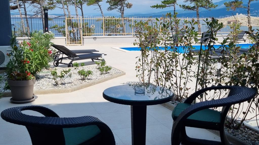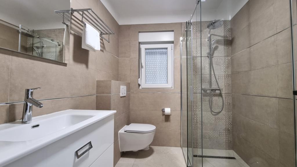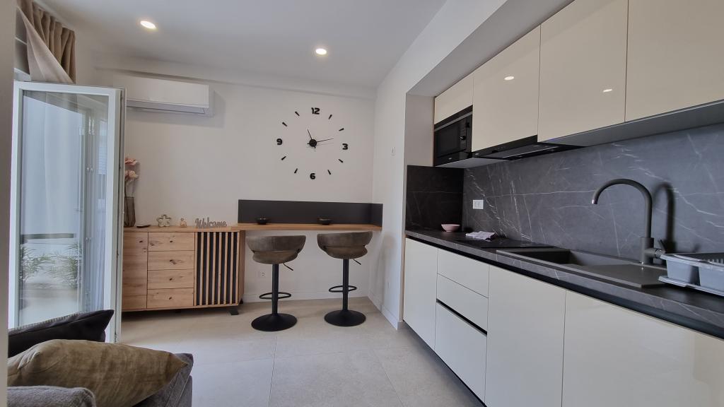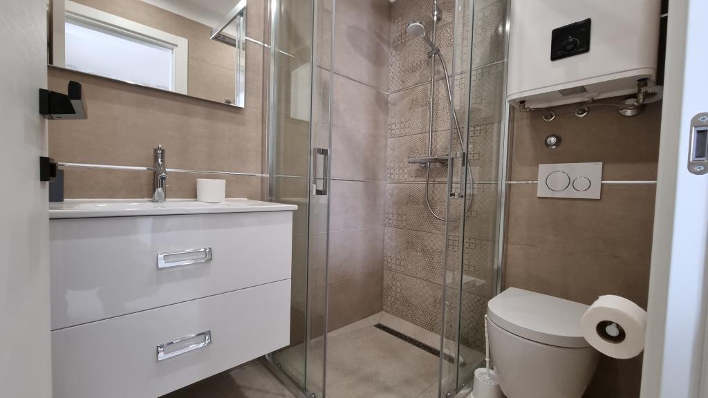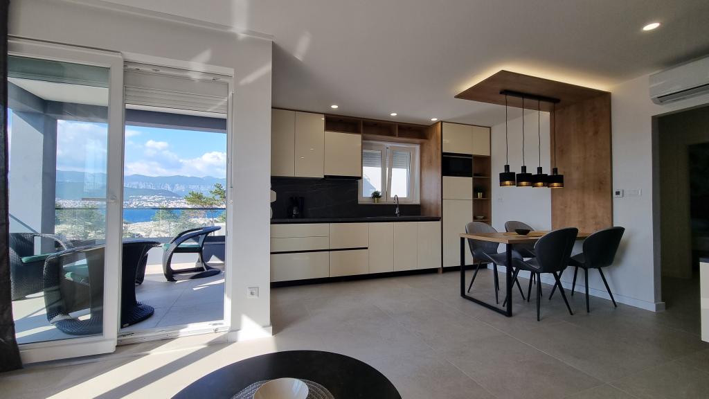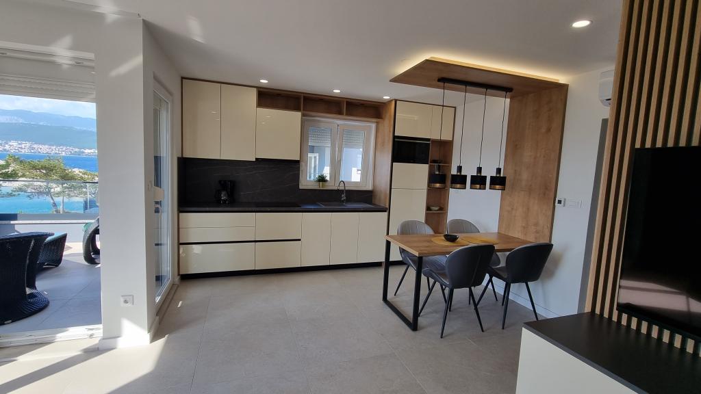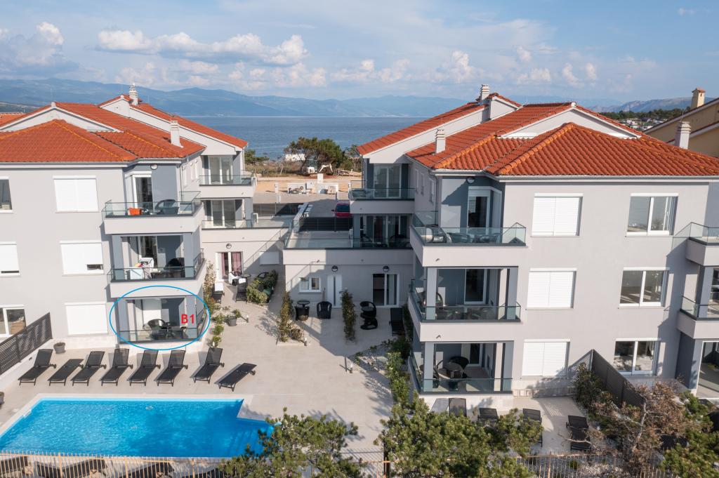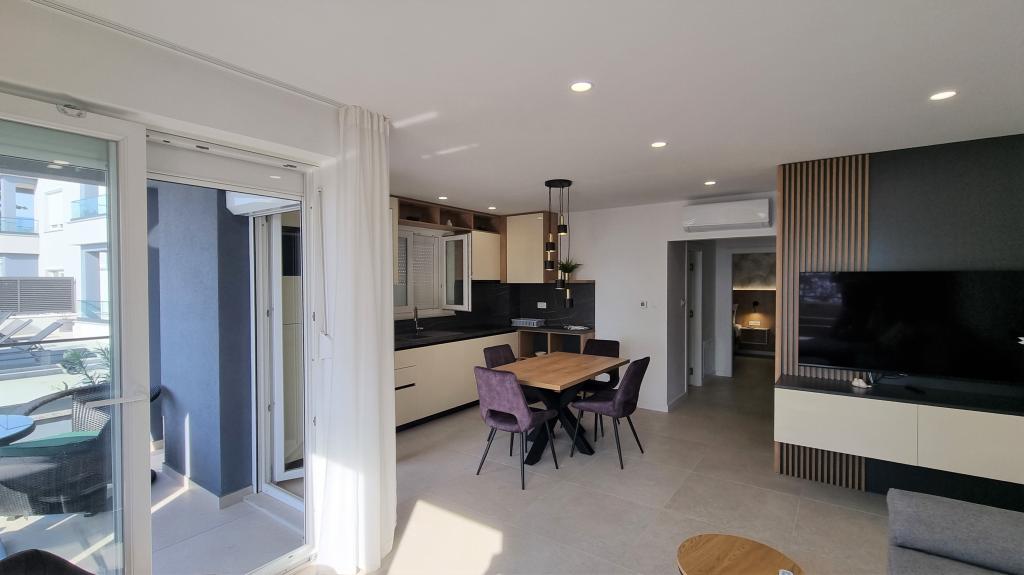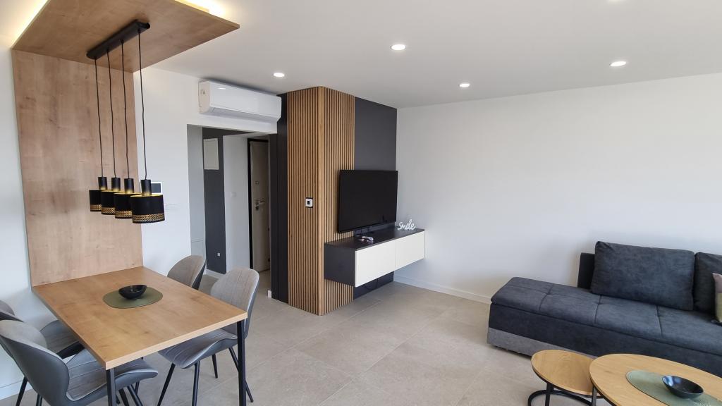 Ces appartements de luxe avec vue sur la mer sont situés dans un complexe d'immeubles dans un endroit calme. Tous les appartements sont équipés de façon moderne de deux, voire trois climatiseurs et de télévisions intelligentes dans les salons et les chambres. Le bâtiment dispose d'une grande piscine d'eau salée (36 m2) à usage commun, ouverte de mai à octobre, avec des températures qui atteignent généralement 20-26°C. Le bâtiment dispose d'un total de 12 appartements. L'immeuble dispose d'un parking privé entièrement clôturé. A proximité immédiate se trouve une grande plage de galets et dans le bâtiment adjacent se trouve un excellent restaurant qui propose également une sélection de spécialités locales. Tous les appartements sont équipés de plaques à induction, d'un réfrigérateur avec congélateur, d'une bouilloire, d'une cafetière, d'un grille-pain, d'un lave-vaisselle et d'un four micro-ondes. L'espace à côté de la piscine est équipé de chaises longues, de parasols et d'une douche extérieure. Une connexion Wi-Fi gratuite est disponible dans tout le bâtiment.