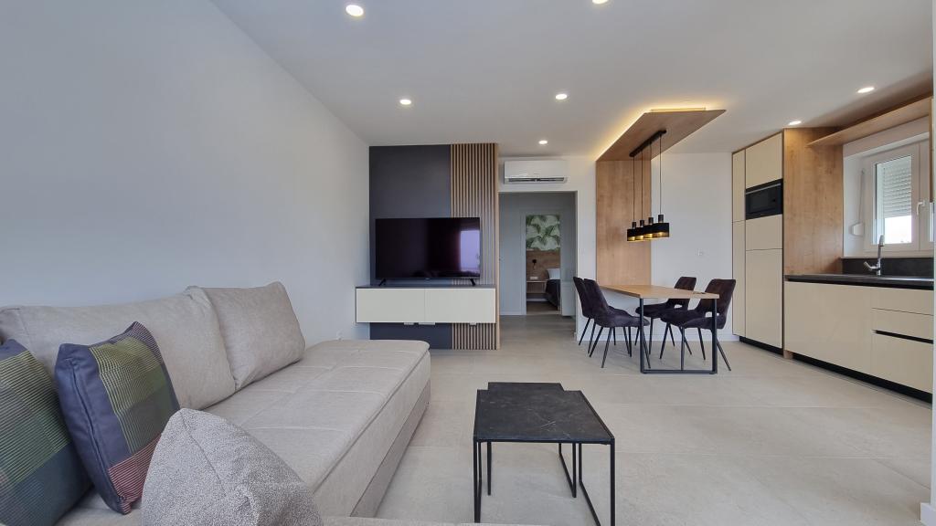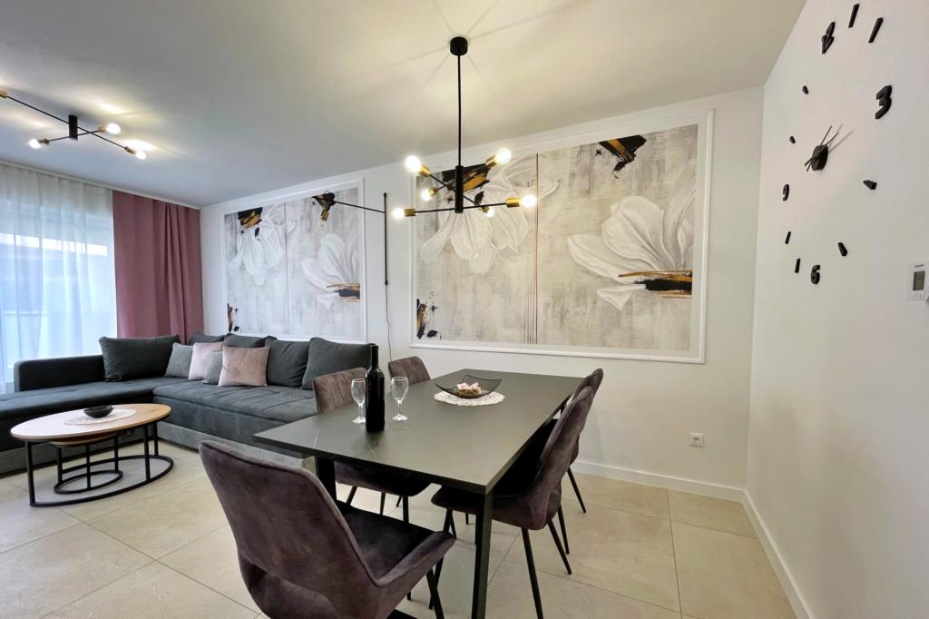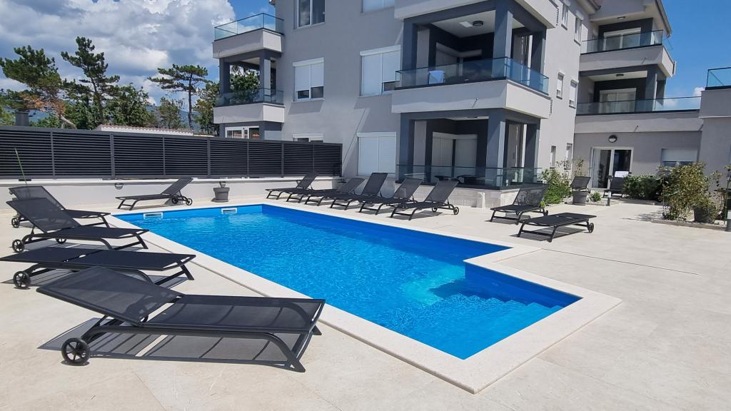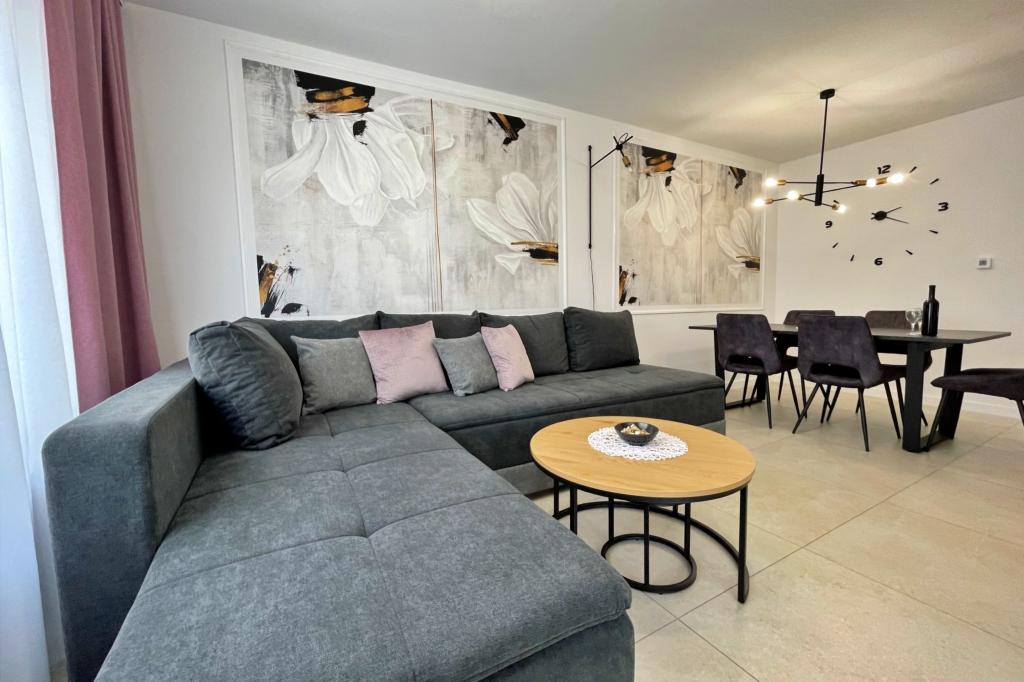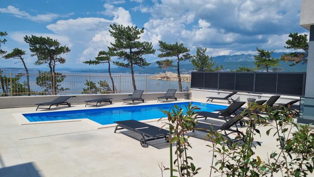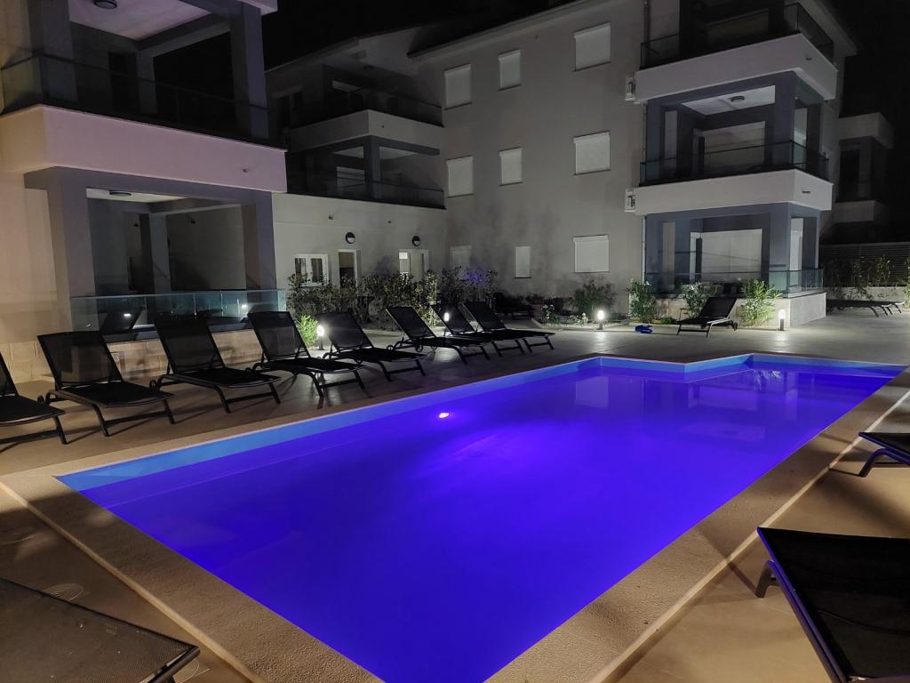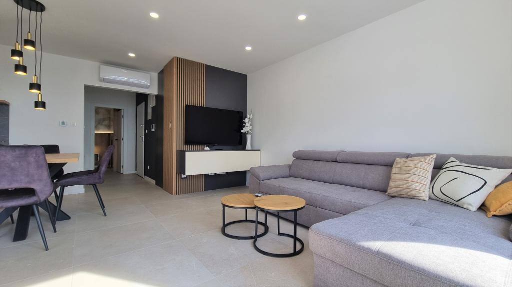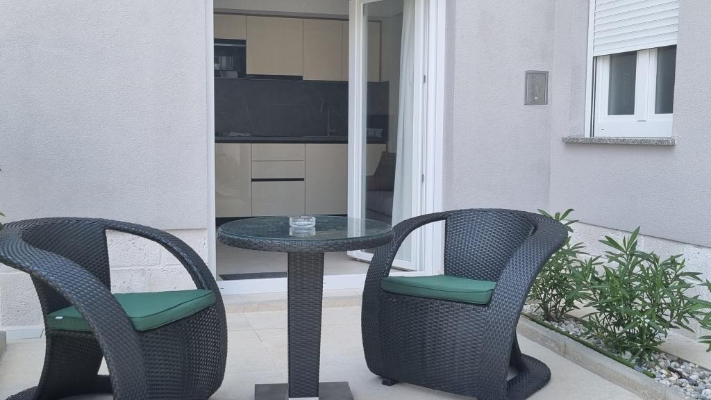 Ces appartements de luxe avec vue sur la mer sont situés dans un complexe d'immeubles dans un endroit calme. Tous les appartements sont équipés de façon moderne de deux, voire trois climatiseurs et de télévisions intelligentes dans les salons et les chambres. Le bâtiment dispose d'une grande piscine d'eau salée (36 m2) à usage commun, ouverte de mai à octobre, avec des températures qui atteignent généralement 20-26°C. Le bâtiment dispose d'un total de 12 appartements. L'immeuble dispose d'un parking privé entièrement clôturé. A proximité immédiate se trouve une grande plage de galets et dans le bâtiment adjacent se trouve un excellent restaurant qui propose également une sélection de spécialités locales. Tous les appartements sont équipés de plaques à induction, d'un réfrigérateur avec congélateur, d'une bouilloire, d'une cafetière, d'un grille-pain, d'un lave-vaisselle et d'un four micro-ondes. L'espace à côté de la piscine est équipé de chaises longues, de parasols et d'une douche extérieure. Une connexion Wi-Fi gratuite est disponible dans tout le bâtiment.