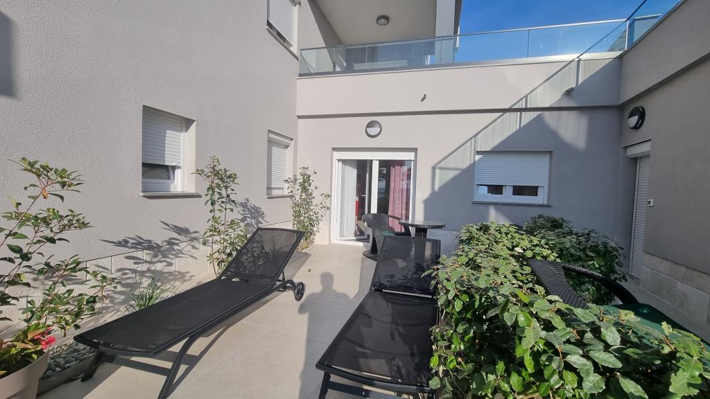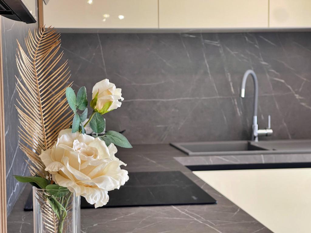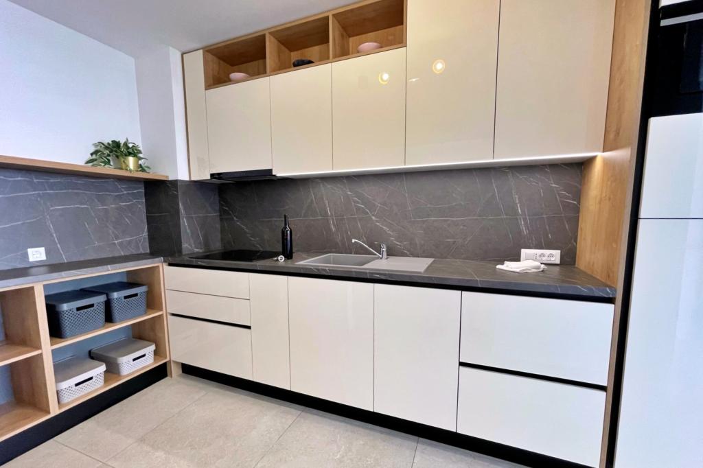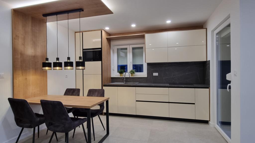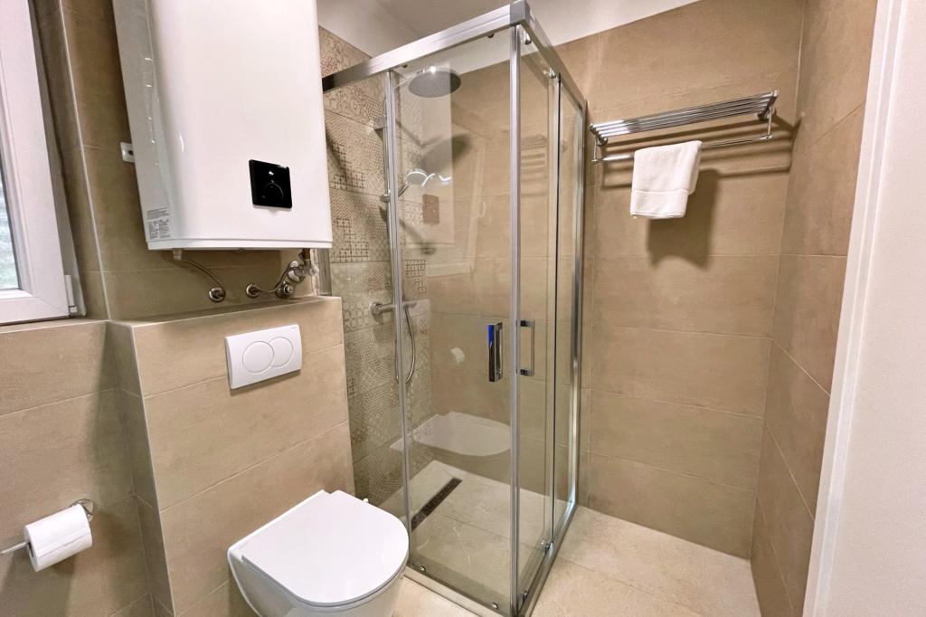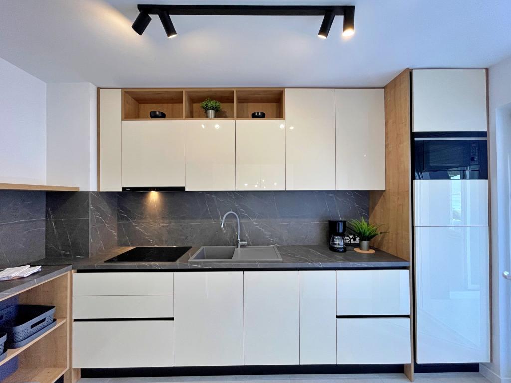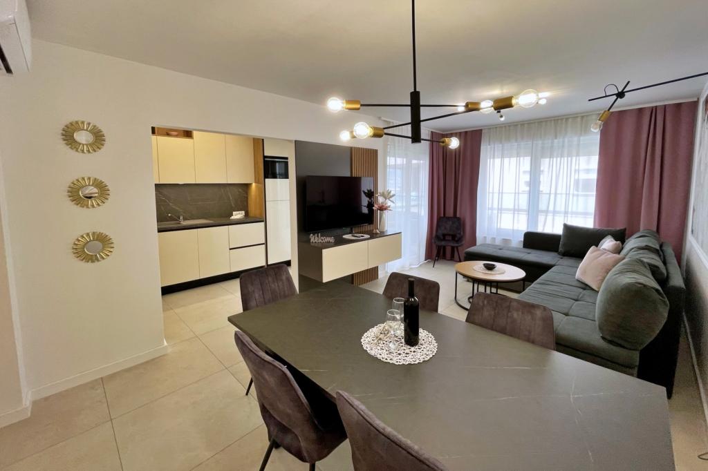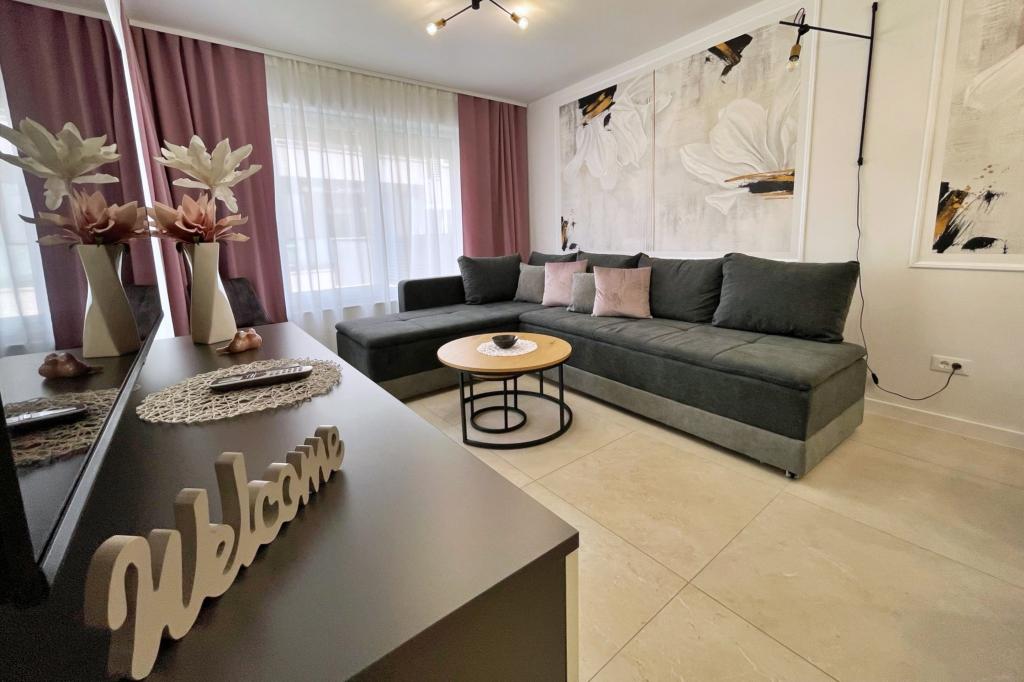 Ces appartements de luxe avec vue sur la mer sont situés dans un complexe d'immeubles dans un endroit calme. Tous les appartements sont équipés de façon moderne de deux, voire trois climatiseurs et de télévisions intelligentes dans les salons et les chambres. Le bâtiment dispose d'une grande piscine d'eau salée (36 m2) à usage commun, ouverte de mai à octobre, avec des températures qui atteignent généralement 20-26°C. Le bâtiment dispose d'un total de 12 appartements. L'immeuble dispose d'un parking privé entièrement clôturé. A proximité immédiate se trouve une grande plage de galets et dans le bâtiment adjacent se trouve un excellent restaurant qui propose également une sélection de spécialités locales. Tous les appartements sont équipés de plaques à induction, d'un réfrigérateur avec congélateur, d'une bouilloire, d'une cafetière, d'un grille-pain, d'un lave-vaisselle et d'un four micro-ondes. L'espace à côté de la piscine est équipé de chaises longues, de parasols et d'une douche extérieure. Une connexion Wi-Fi gratuite est disponible dans tout le bâtiment.