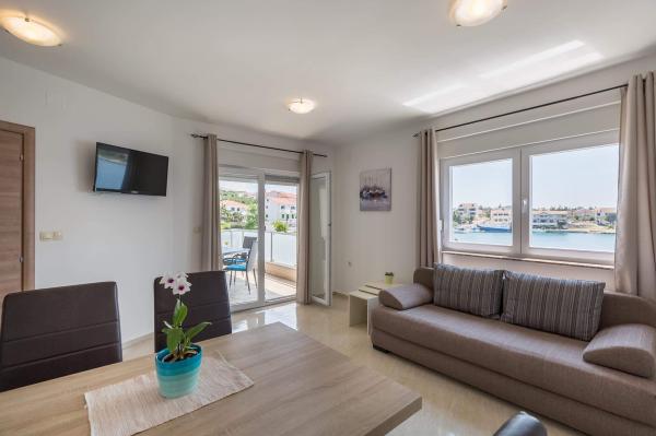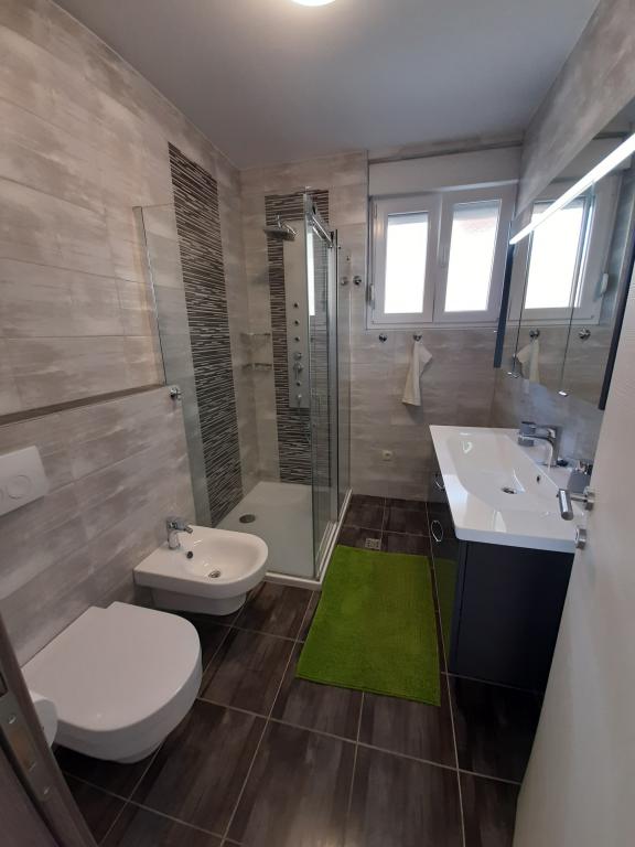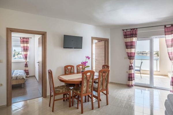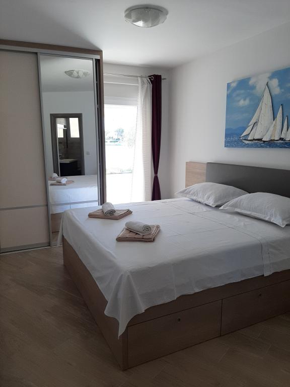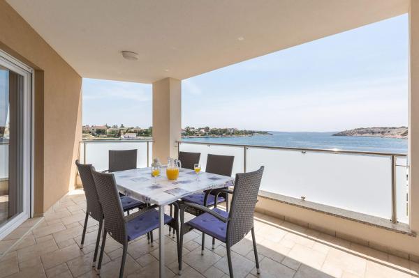 Des appartements neufs et entièrement équipés sont situés dans le petit village de pêcheurs de Šimuni, idéal pour des vacances en famille. Chaque appartement a sa propre terrasse couverte avec une belle vue sur la mer. Dans la cour de la maison il y a un grill, une douche de jardin. Un parking pour la voiture est prévu. A proximité immédiate de l'appartement se trouvent un magasin, un marché aux poissons, des restaurants et un bureau de change.
