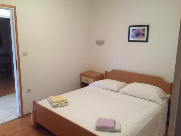 Notre maison contient 5 appartements entièrement équipés avec terrasses donnant sur la mer, situés en plein centre de Šimuni. Le contenu commun de tous les appartements est la pièce au sous-sol de la maison, le coin barbecue et l’espace de repos dans le jardin. La salle du rez-de-chaussée est disponible pour tous les invités qui ont une télévision, des toilettes, un bar et des tables avec des bancs, servant aux invités un repos quotidien, regardant la télévision, lisant ... Un coin grill. la cheminée est équipée d'un grill-house où il y a un évier, un espace de travail et des tables à manger sous le dais, et le jardin a une table avec des chaises entourée d'arbres et de fleurs et sert également pour le repos quotidien, les repas, la lecture etc. espace de jardin, nous avons notre propre parking pour les voitures, et nous offrons également notre propre espace de stationnement pour les petits bateaux dans la mer. L’établissement est situé juste à côté d’une épicerie locale, d’un marché aux poissons, d’un restaurant et à 5 min à pied d’une belle plage de sable fin baignée de forêts de pins.