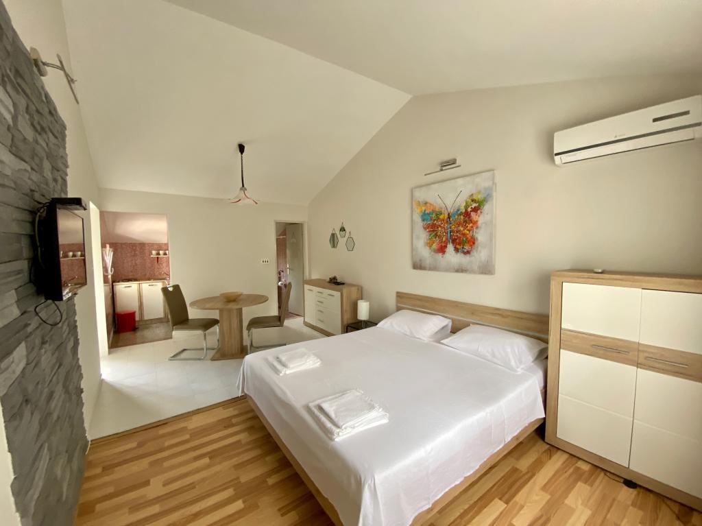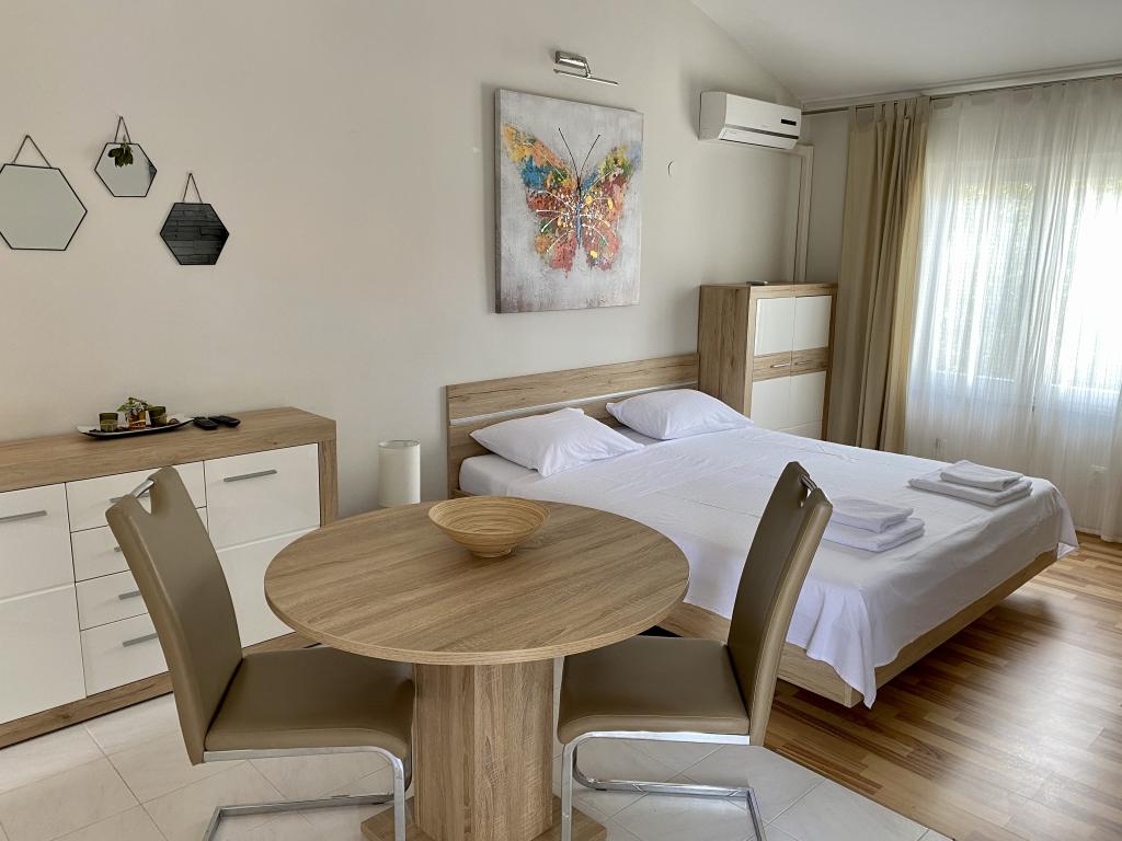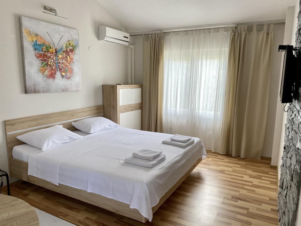 La maison est située dans un quartier calme, première rangée de la mer, à moins d'une minute à pied de la plage, des restaurants de restauration rapide et d'autres commodités offertes sur la plage. Il y a trois appartements dans la maison, dont les appartements M1 et M2 sont situés au premier étage et l'appartement M3 est au rez-de-chaussée. Tous les appartements sont entièrement équipés de façon moderne.