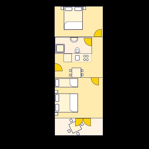 Appartement pour quatre personnes avec un lit supplémentaire (60 m2)