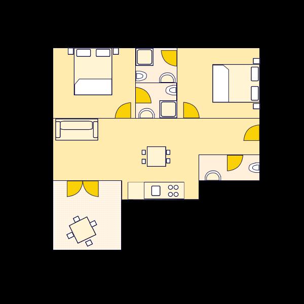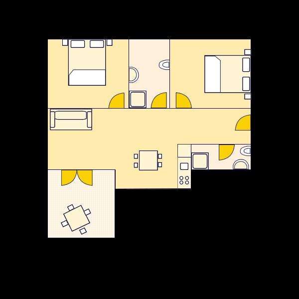 Appartement pour quatre personnes avec deux lits supplémentaires (90 m2)