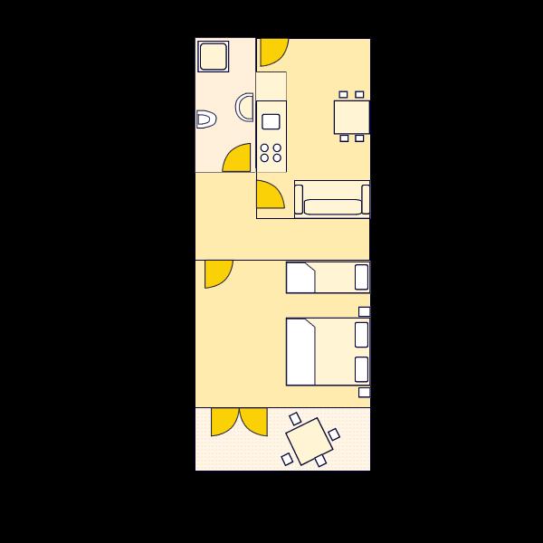 Studio appartement pour deux personnes avec trois lits supplémentaires (60 m2)