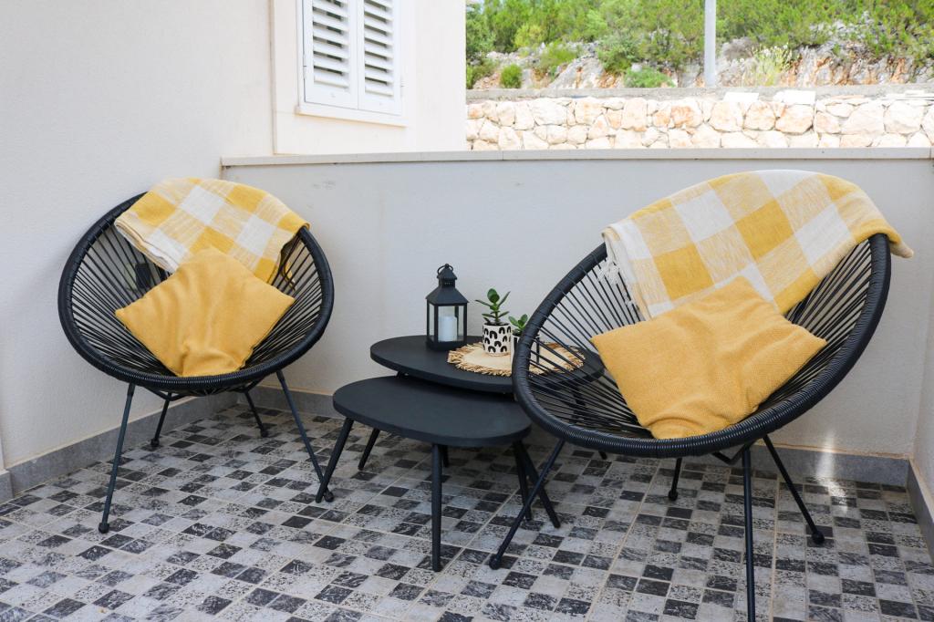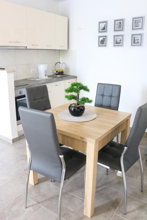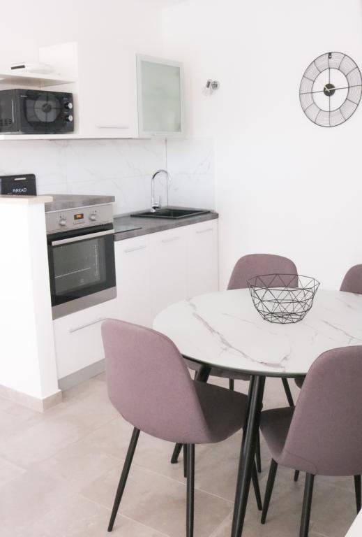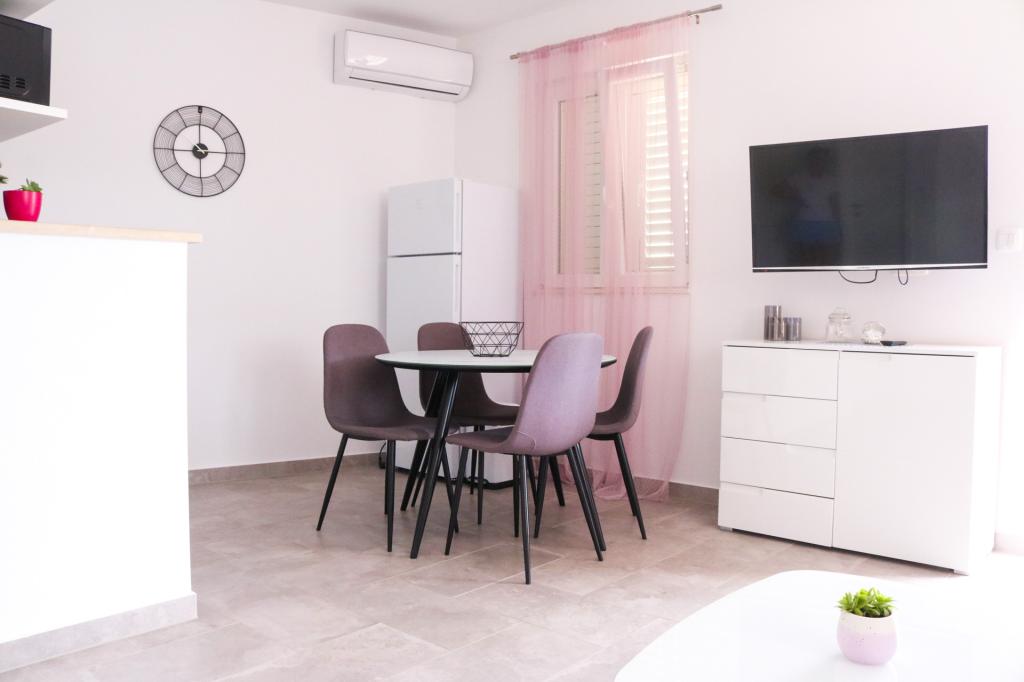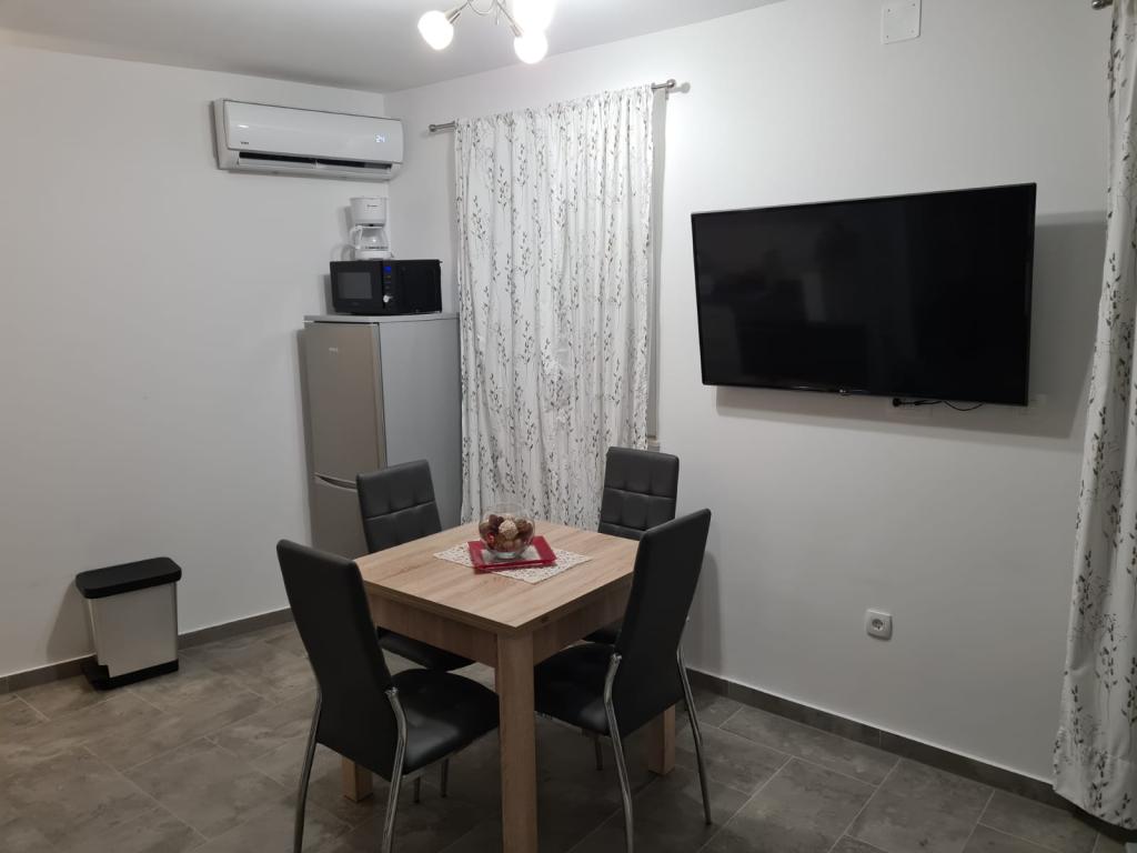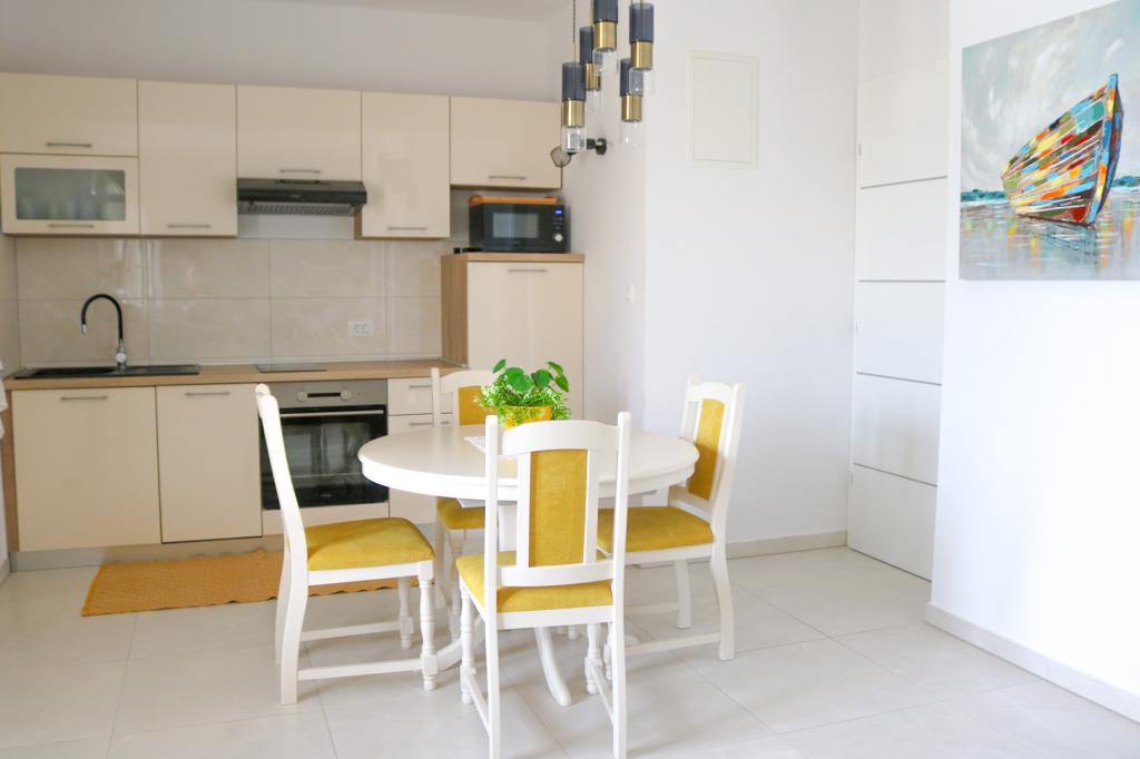 Appartements entièrement équipés selon les nouvelles conditions de catégorisation.Les appartements sont meublés de façon moderne. Situé dans une baie tranquille. L'installation est située juste à côté de la mer. Le bâtiment a été nouvellement construit en 2022. Vous pouvez accéder au centre, qui se trouve à seulement 4 kilomètres, en voiture, en vélo, par l'autoroute ou en passant par la ville de Slađenovići.