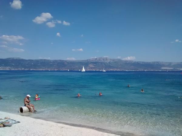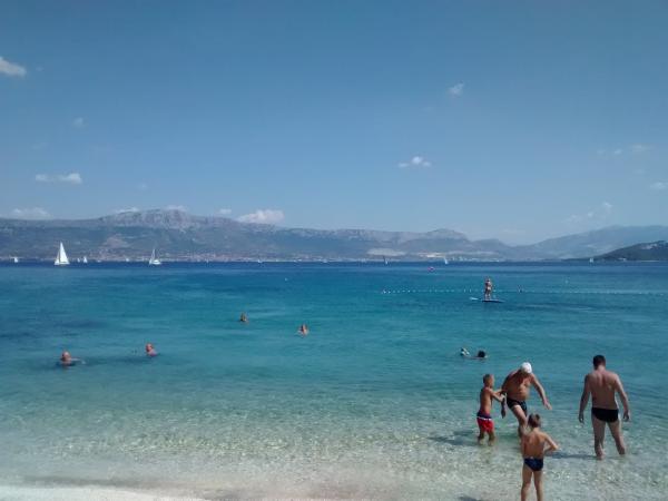 Excellent appartement avec tout le nécessaire pour un séjour en famille avec un balcon donnant sur la mer. Parfait plage 2 minutes à pied avec de nombreuses activités. Près de grandes villes pour faire du tourisme - Split et Trogir. Et l'hôte très agréable qui se soucie de leurs clients. Je le recommande fortement.
