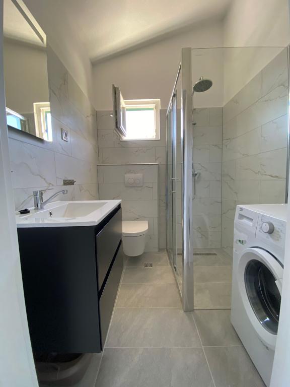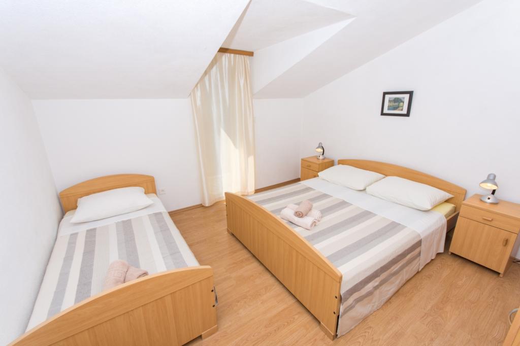 Les appartements Anka sont situés à Slatine, sur l'île de Ciovo, à 5 km de Trogir, et sont reliés à Split par une ligne de bateau.Les appartements sont situés au premier et au deuxième étage d'une maison familiale.L'appartement pour 6 personnes est situé au premier étage et se compose de 3 chambres, salon, cuisine et salle de bain.Au deuxième étage, il y a deux appartements chacun avec deux chambres, une cuisine et une salle de bain.Tous les appartements ont des terrasses avec une vue magnifique sur la mer. Tous les appartements ont une entrée séparée.La maison est entourée de plantes méditerranéennes et d'un jardin pour les enfants.Parking et utilisation du barbecue en plein air.