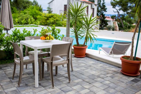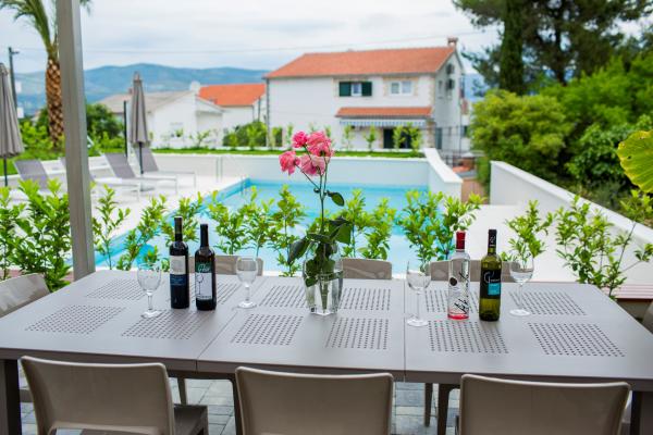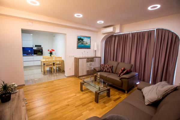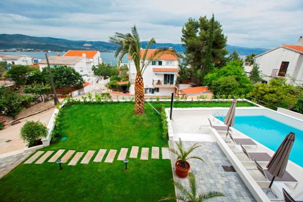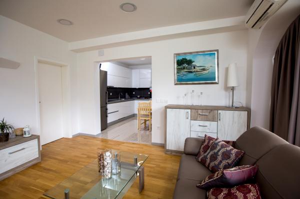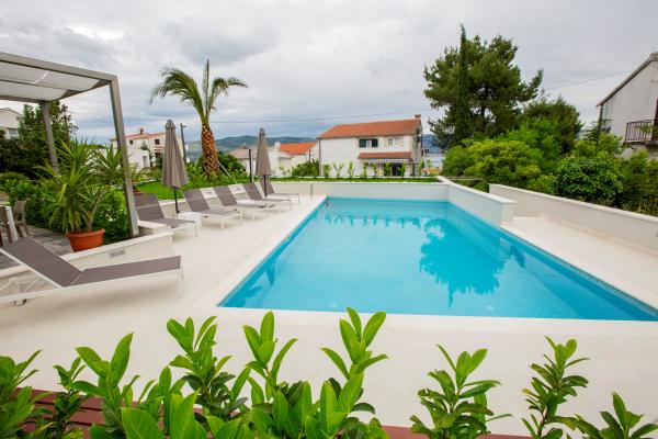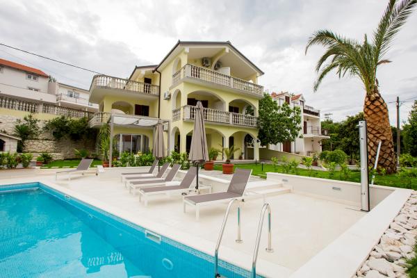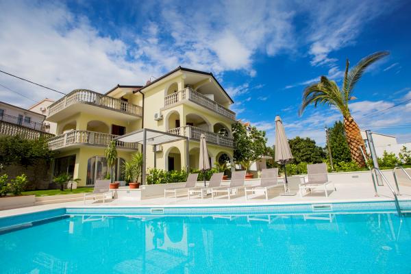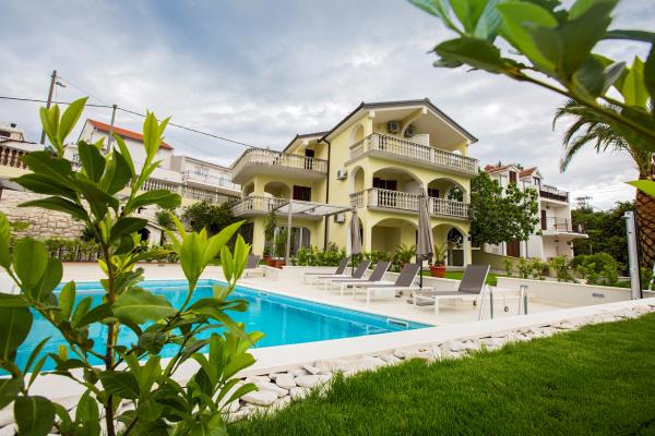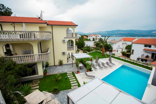 Taxe de sejour est inclus dans le prix.L'appartement et le bâtiment sont modernes, de qualité, bien entretenus et surtout propres. L'appartement est très confortable et spacieux, idéal pour la famille. La vue depuis le balcon sur la mer est fantastique. La piscine dans le jardin paysager est très propre et vous invite à vous détendre. Le propriétaire est incroyablement serviable, nous ne pouvons le remercier assez pour un séjour aussi agréable. Très bien situé pour explorer la côte dalmate centrale.